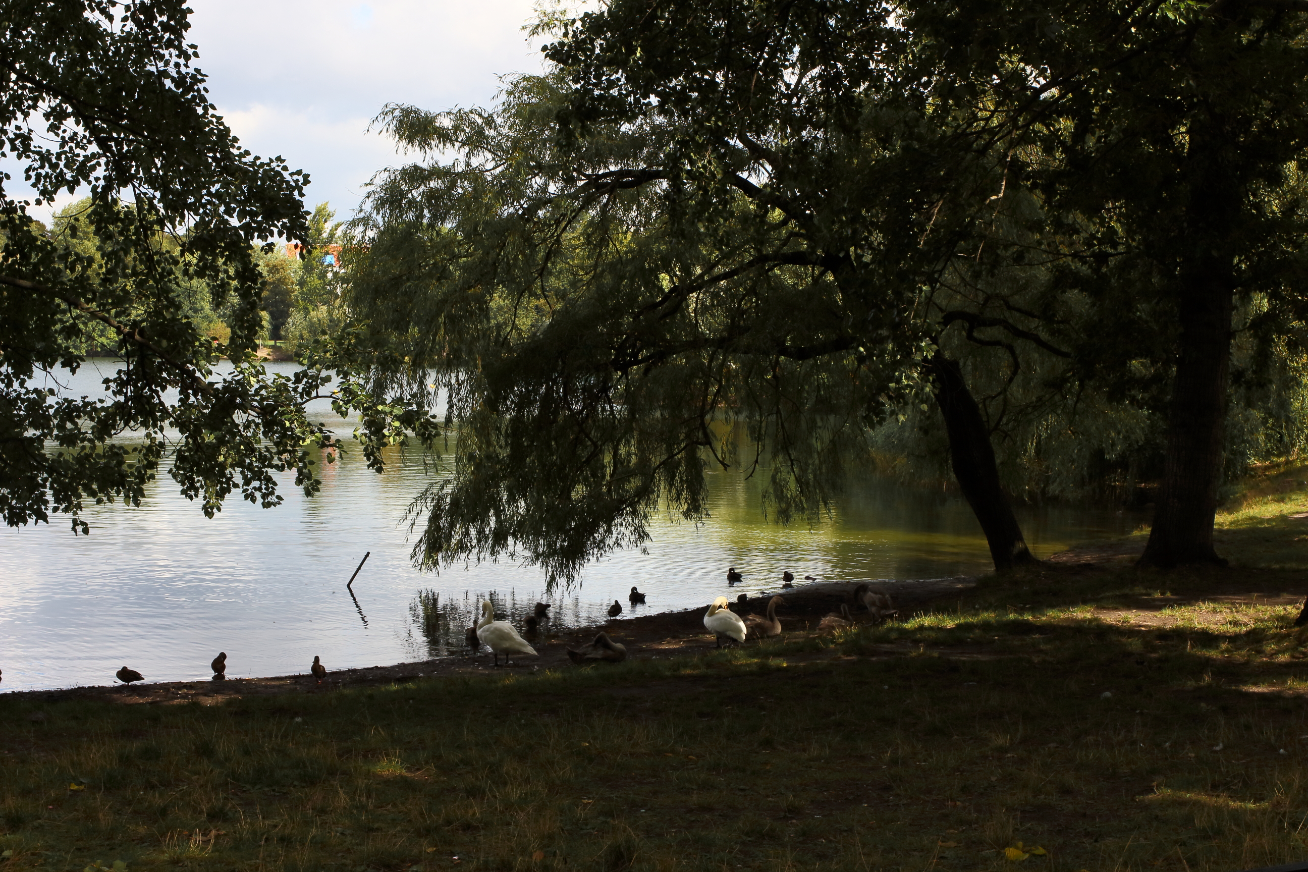 Anschließend spazierten wir zu dem nahegelegenen See, an dem es sowohl Enten als auch die in Berlin allgegenwärtigen Spatzen zu beobachten gab.