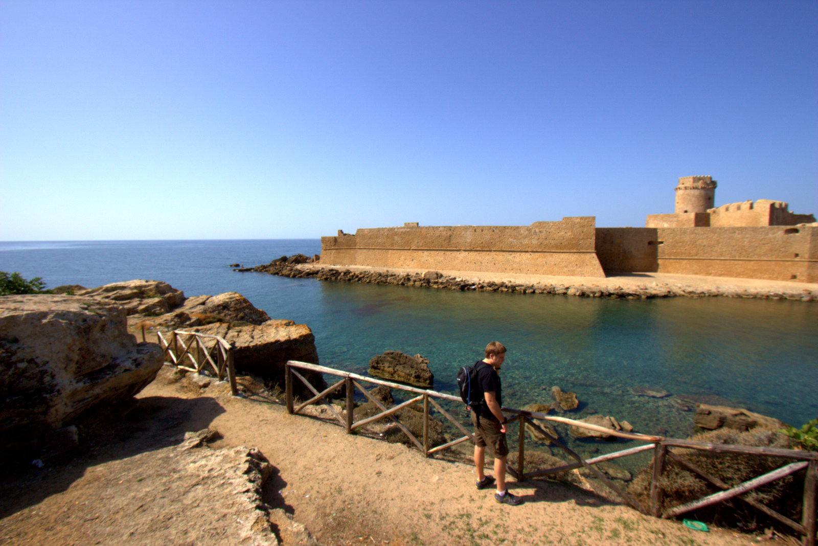 Am zweiten Tag zog es uns nach Norden zu Le Castella. Dort gab es eine Festungsanlage, die zum Schutz vor Piraten ins Meer gebaut wurde. Wir erkundeten die gesamte Anlage und erklommen den Turm von Le Castella. Von dort hatten wir einen wunderschönen Blick, sowohl ins Landesinnere als auch übers Meer. Zum Schluss führte unser Weg noch an einem „Videoraum“ vorbei, wo man sich ein Dokumentarfilm rund um diese Region anschauen konnte. Da es uns nicht möglich war, die englische Tonspur auszuwählen, begnügten wir uns mit der italienischen Version.