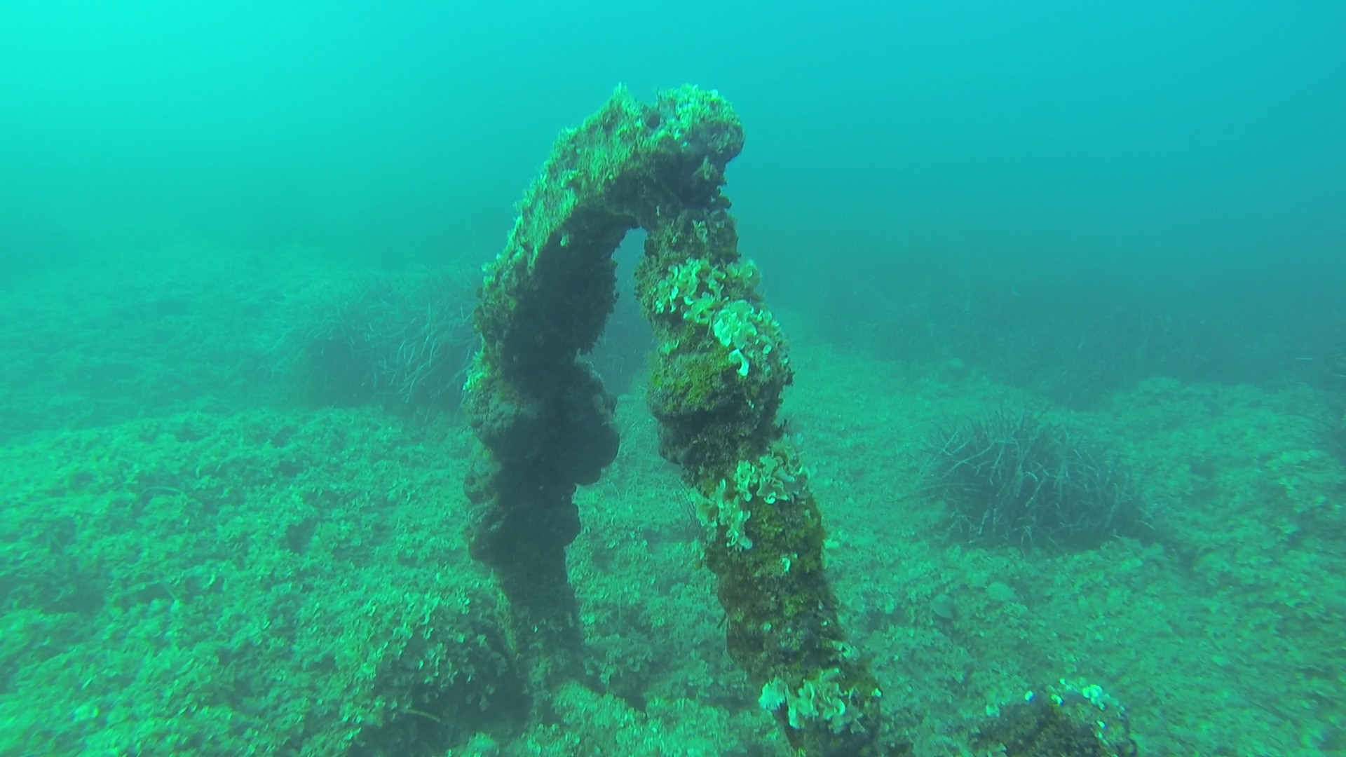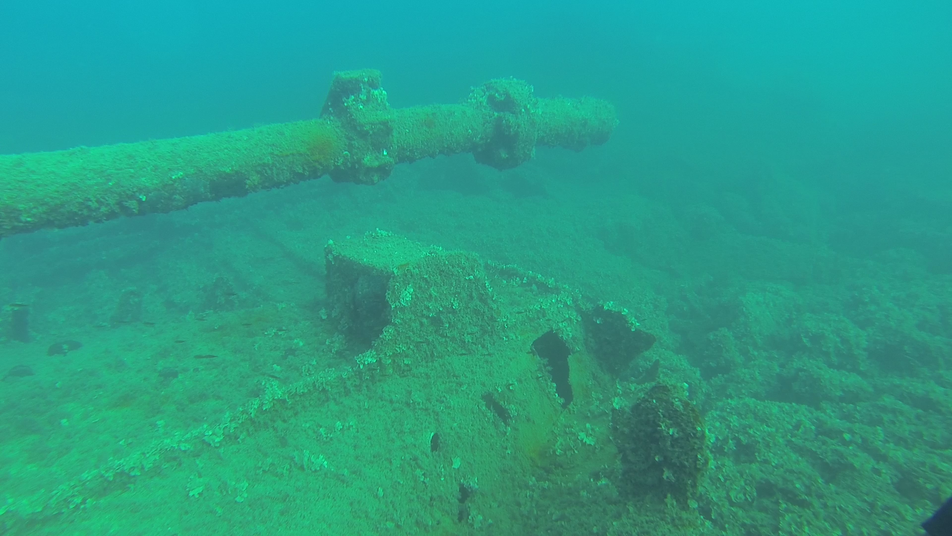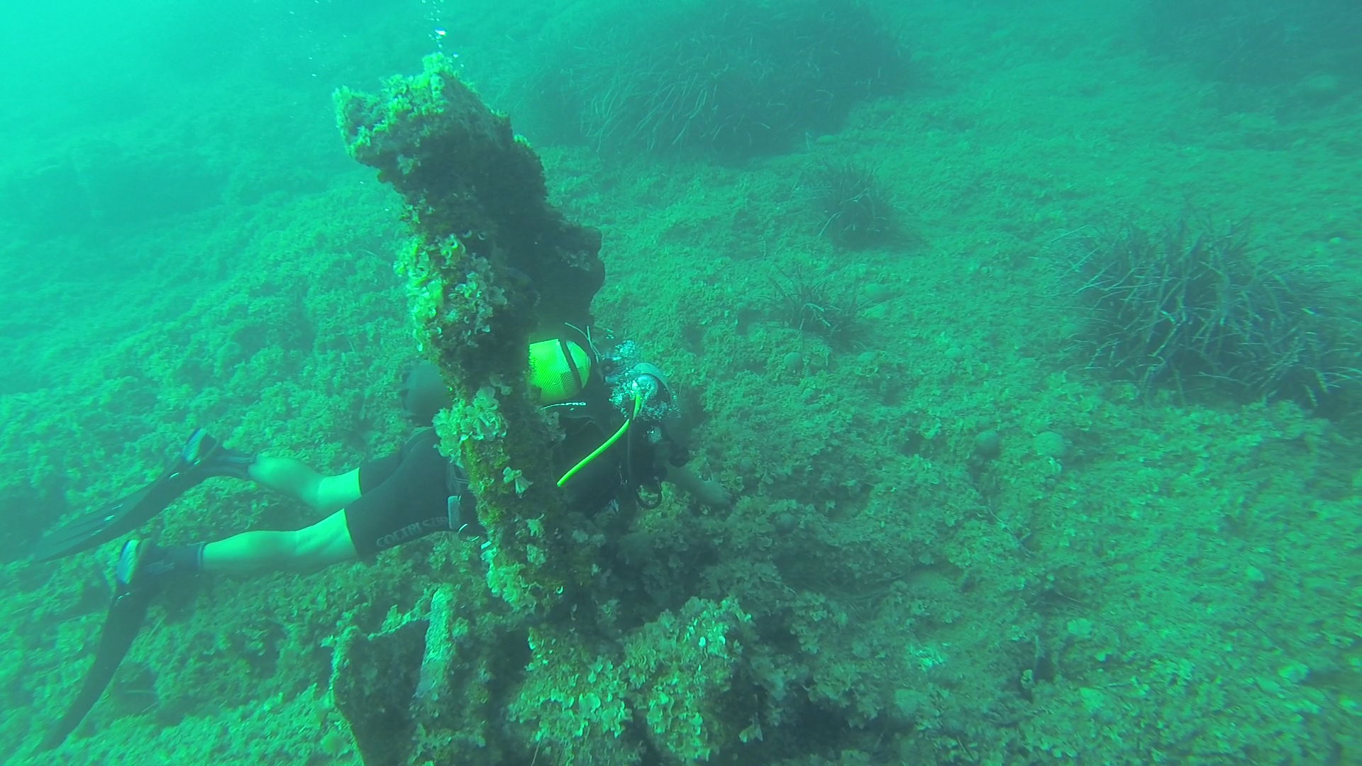 Ab gings 10 m unter die Wasseroberfläche wo sich ein wunderschönes Wrack präsentierte. Ein etwa 45 minütiger Tauchgang lag vor dem Guide und Benny. Ein paar interessante Fische und vor allem große Quallen (Cassiopeia) kamen ihm vor die Linse. Wieder auf dem Boot ging es zurück an Land.