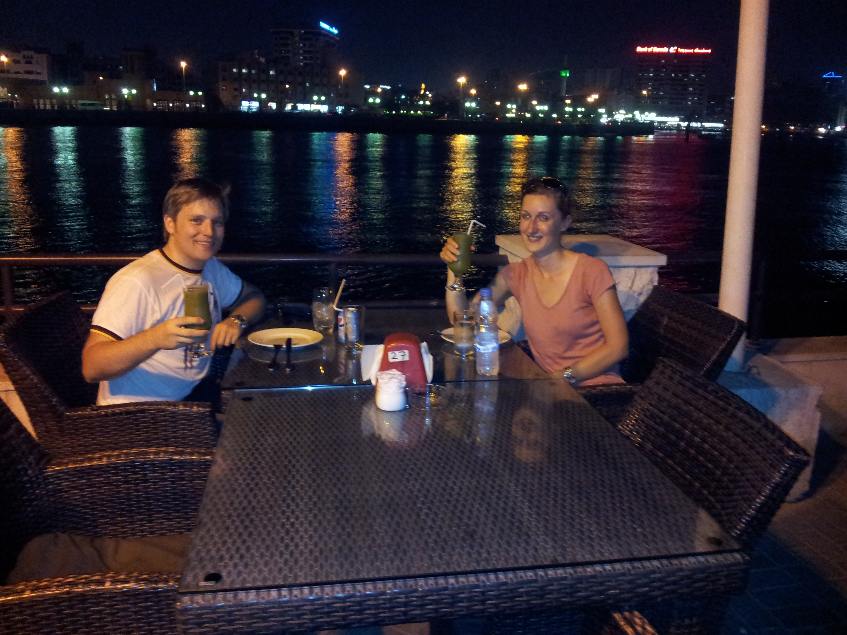 Nachdem wir dann wieder durchgegart waren, versuchten wir ein Boot zu finden, das uns über den Creek brachte. Davon abgesehen, dass uns die Bussuche reichlich Zeit gekostet hat (das lief ungefähr so ab wie in Asterix erobert Rom, als Asterix und Obelix im Haus das Verrückte macht von einem Schalter zum anderen gelaufen waren), fanden wir dann recht schnell ein Boot, das uns für sage und schreibe 1 Dirham (etwas mehr als 20 Cent) übergesetzt hat.
