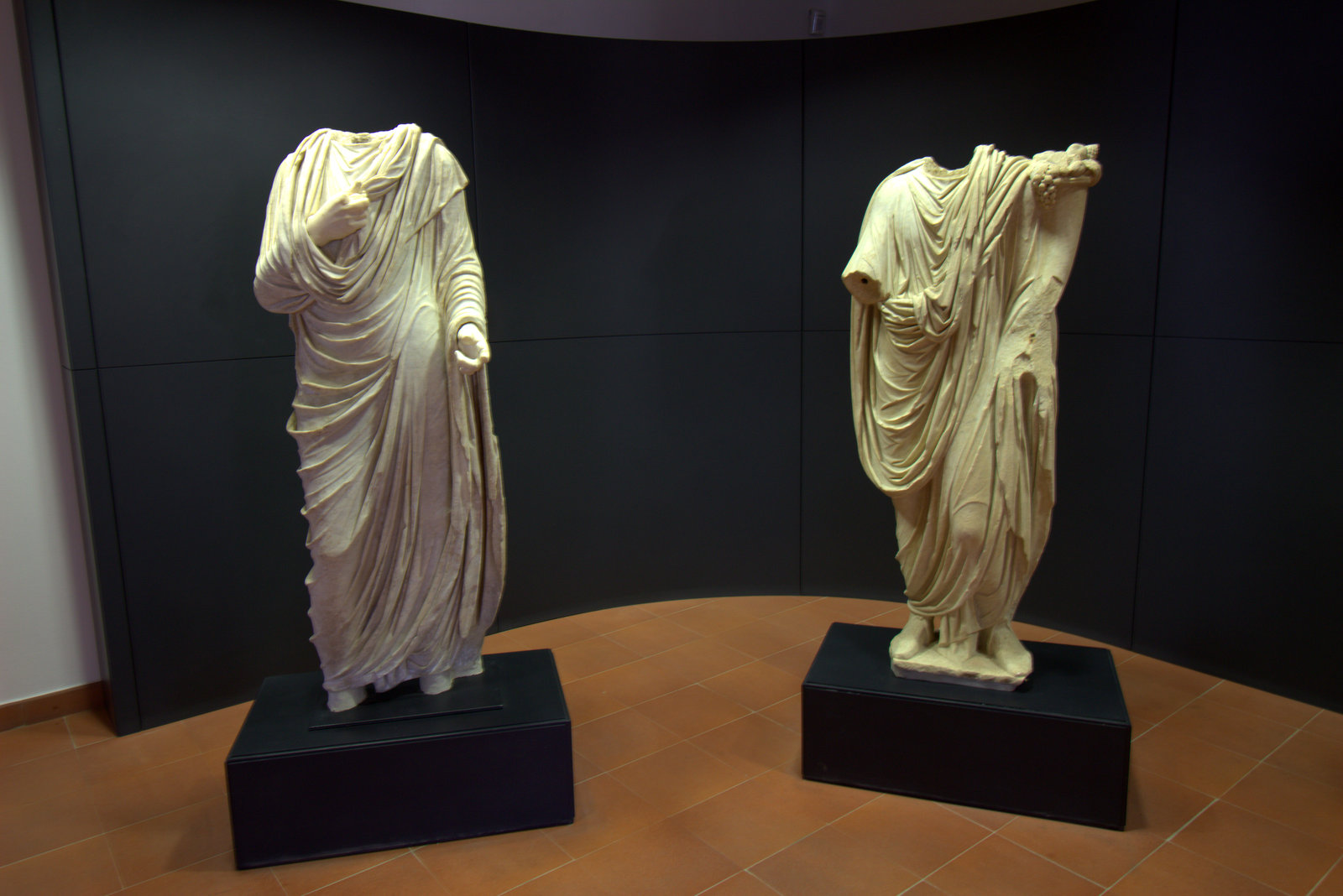 Auch ein Museum mit Ausgrabungsfunden und jeder Menge Informationen – auf italienisch und für uns daher nutzlos – befand sich auf dem Gelände. Als wir eintraten, kam auch schon eine ältere Dame auf uns zu, die uns bat uns ins Gästebuch einzutragen. Sie erklärte uns dann noch wie wir durch die Räume des zweigeschossigen Museums wandern sollten. Oben angekommen betrachteten wir die Bilder als Bilderbuch und versuchten uns etwas zusammen zu reimen. Man fand auch Münzen, die über 2000 Jahre alt waren. Unten befanden sich einige Statuen, die meisten davon kopflos. Keine Ahnung wieso gerade bei fast allen Statuen vor allem der Kopf fehlte.