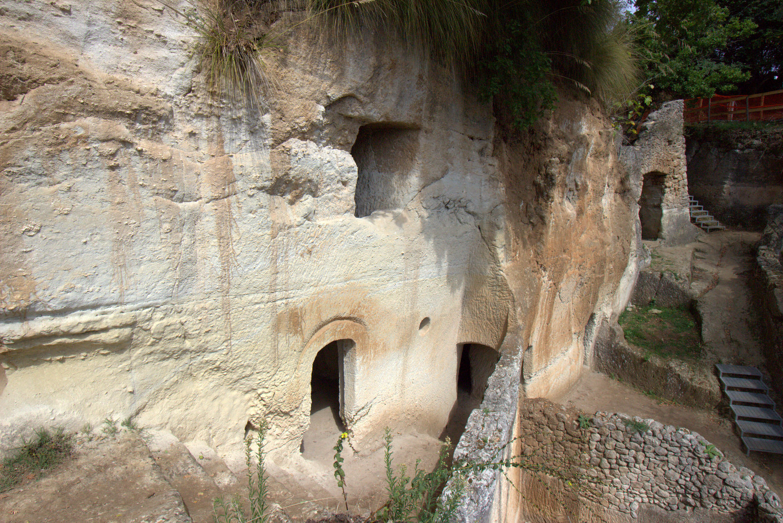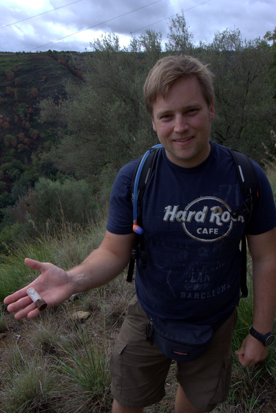 Da alles gut klappte, hatten wir dann noch ca. drei Stunden bis das Schiff abfuhr. Wir hatten gelesen, dass es in der Nähe alte Höhlen gab, die in byzantinischer Zeit in den Felsen gegraben worden sind und bis ins 14. Jahrhundert bewohnt waren. Es gab wohl an die 80 Stück, aber es sind nur noch wenige als solche zu erkennen. Manche hatten mehrere Zimmer und auch einen Abzug für das Feuer. Als wir immer weiter auf den Pfaden herumkraxelten, entdeckte Benny plötzlich eine Schrotpatrone im Gras. Interessanterweise lagen überall in der Gegend Knochen herum, die auch nicht gerade klein waren. Wir haben natürlich direkt die ‚Ndrangheta (kalabrische Mafia) in der Nähe vermutet, aber es war niemand zu sehen…