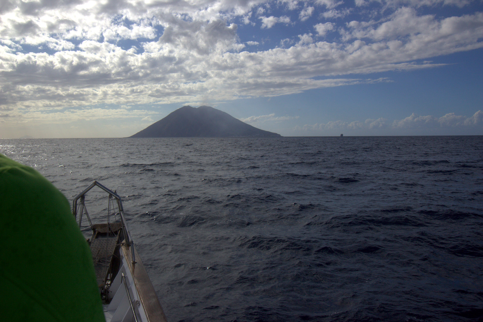 Die Wellen waren immer noch heftig und nach einem kurzen Versuch, in Richtung der Feuerrutsche zu fahren, brach der Kapitän ab! Außer ein paar Rauchschwaden hatten wir vom Vulkan leider nichts gesehen.