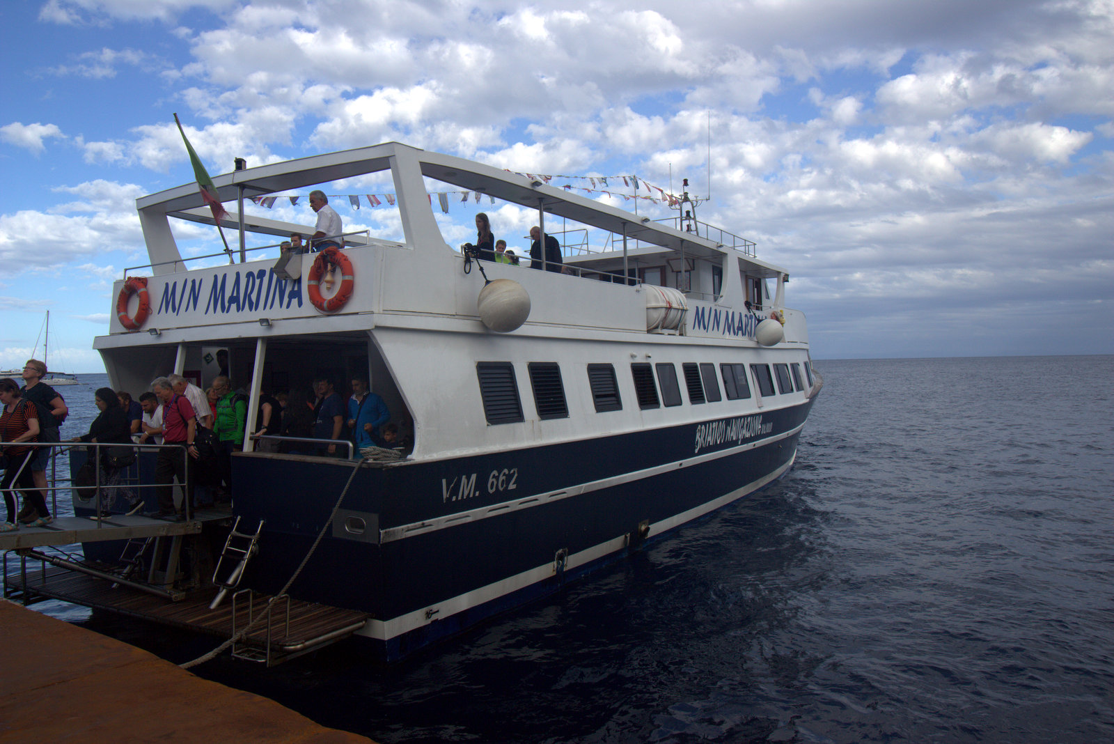 Unser Schiff fuhr erst einmal noch zu dem nahegelegenen Felsen, dem Strombolicchio, auf dem ein Leuchtturm steht.