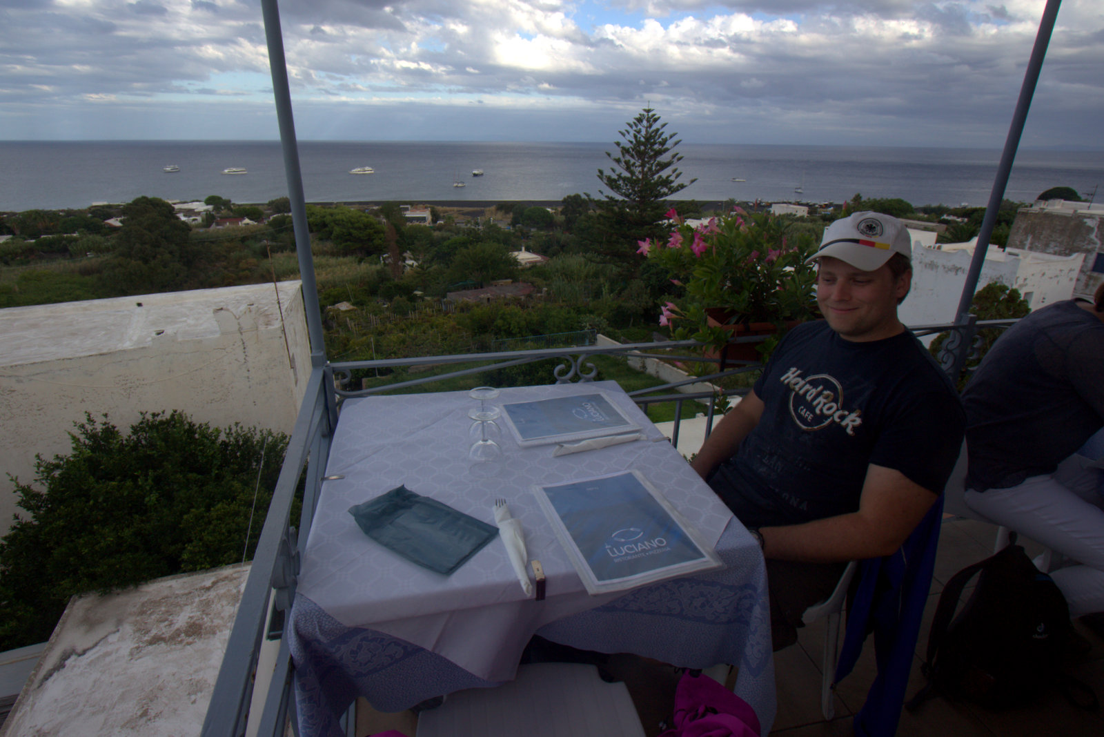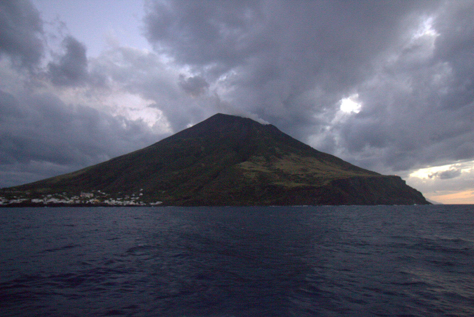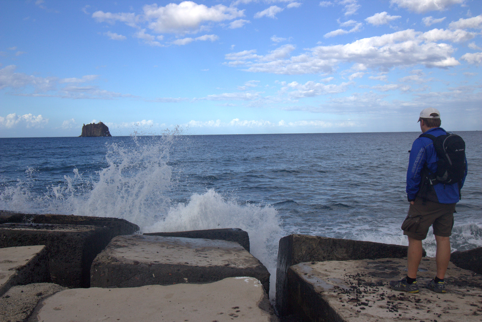 Auf Stromboli angekommen, hatten wir 2,5 Stunden Aufenthalt, bis es dann bei Sonnenuntergang zu dem eigentlichen Highlight kommen sollte, der Fahrt zur Rückseite der Insel, an der sich die sogenannte Feuerrutsche befindet, wo die Lava der in 10-15 minütigen Abständen stattfindenden Eruptionen ins Meer fließt.
