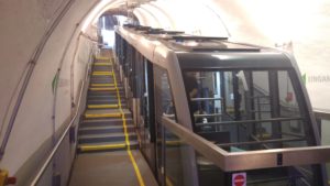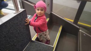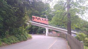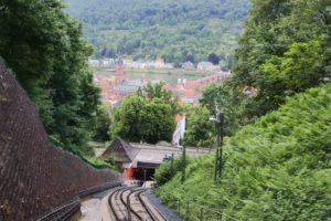 Bei dieser Pause überlegten wir, wie wir den Berg wieder hinauf kommen sollten. Der Weg war teilweise mit Kopfsteinpflaster gewesen, was es quasi unmöglich machte, mit dem Kinderwagen wieder hoch zu kommen. Auf Nachfrage erzählte uns der Kellner, dass es eine Bergbahn hoch gäbe, die bis zum Königstuhl fahren würde. Das hörte sich spannend an, also beschlossen wir diese auszuprobieren. Und wir hatten Glück, da es schon relativ spät war, hatte das Schloss schon zu, weswegen die Tickets günstiger waren, denn normal enthalten diese noch den Eintrittspreis für das Schloss.Wir fuhren noch eine Station weiter nach oben bis zur Station Molkenkur, von wo aus wir wieder runter zum Camper spazierten.