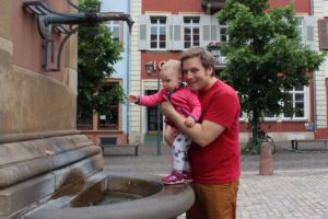 Als Benny mit Clara zum Schloßplatz aufbrach, mussten sie einen Weg hinab steigen, auf dem Clara alle Straßenlampen als Bälle titulierte. Alle 5 Sekunden kam das goldige Wort „Ball“ aus ihrem Mund. Einfach süß. Unten angekommen, genossen sie erst einmal einen tollen Blick über Heidelberg und auch auf das Schloss.
