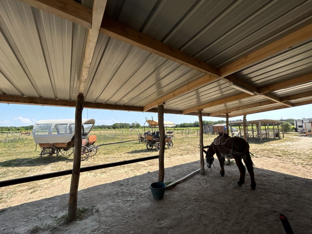Nachdem wir zu üblichen Zeiten aufgestanden waren und gefrühstückt hatten, mussten wir uns heute mal wieder um das Auffüllen unserer Vorräte kümmern. Nils benötigte dringend Windeln, also packten wir den Camper (wir wollten den Tag heute noch mal unterwegs verbringen) und machten uns auf den Weg zum Leclerc. Dort angekommen, bekamen wir endlich eine Käppi für Clara, die wir ja zu Hause vergessen hatten. Irgendwann hatten wir auch den Rest zusammen, wie immer war es eine Tortur in den riesigen Märkten alles zu finden, Nils war auch nicht gut drauf und machte ziemlich Palaver. Anschließend machten wir uns auf den Weg zum nördlichsten Punkt der Insel, da wir dort den Leuchtturm besichtigen wollten. Nils schlief unterwegs ein, wir vesperten noch unsere von Benny vorbereiteten Baguettes und dann machten sich Clara und Miri auf zum Leuchtturm, Benny blieb bei Nils, der weiter schlief und versuchte auch ein bisschen zu ruhen. Leider war es wieder so warm im Camper, dass das nicht so richtig klappte. Der Leuchtturm von Chassiron wurde 1685 gebaut (zweiter Bau: 1834) und war schwarz weiß gestreift was ihm einen interessanten Look verpasste. Außerdem ist er noch heute in Betrieb. Clara und Miri stiegen die 224 Stufen hinauf und genossen die tolle Aussicht über den nördlichsten Teil der Insel. Es war grade eher Ebbe und man sah die verschiedenen Farben der Riffe, die das Meer freigelegt hatte. Anschließend drehten die beiden noch eine Runde durch das kleine Museum, dort sah man die alten Techniken, mit denen die Menschen früher auf der Insel die Fische gefangen hatten. Sie waren teilweise dargestellt durch Modelle und mittels Filmen, die an die Wand gestrahlt wurden. Clara befürchtete erst, dass das gruselig sein würde oder man vielleicht Krebse sehen konnte. Es ging dann aber. Anschließend gingen die beiden noch um den Leuchtturm herum. Dort war auch eine Mauer aufgebaut, die zeigte, wie die Menschen hier Barrieren für die Fische gebaut hatten, um sie bei Ebbe dort drin zu fangen. Diese Mauern waren mittels einer speziellen Technik errichtet (ohne Mörtel) und hielten 20 Tonnen Wasserkraft aus, so dass sie auch starke Stürme überstanden. Mama und Tochter gingen dann zurück zum Camper, um Benny abzulösen, so dass der auch noch auf den Leuchtturm steigen konnte. Da war Nils aber auch schon wach geworden. Benny nahm den Treppenaufstieg auch noch auf sich, in dem er den Leuchtturm hochjoggte. Davon sollte er einen Muskelkater davontragen. Wir hatten halt nicht mehr so viel Zeit, dennoch entschieden wir uns noch den Softeisstand in der Nähe zu besuchen, allerdings wurde mittlerweile die Zeit etwas knapp, denn um 15 Uhr sollte der Eselausritt stattfinden. Clara aß ein Vanillesofteis, Benny nahm Zitrone, und Miri aß mit Nils eine normales Vanilleeis. Das Softeis war etwas anders von der Art her als wir das so kannten aber auch sehr lecker. Dann machten wir uns auf den Weg zu den Eseln. Wir kamen etwas zu spät an, sagten aber als gute Deutsche noch kurz Bescheid, auch wenn es nur 5 Minuten waren. Wir lernten nun den deutschsprachigen Mann kennen, der Clara auf einem Poitou Esel herumführen würde, wir andern spazierten nebenher. Der Mann konnte deshalb so gut Deutsch, weil er lange in Forbach bei der Hydac gearbeitet hatte, einer Tochter der Hydac in Sulzbach. Die Welt ist klein. Irgendwann wollte seine Tochter unbedingt einen Esel haben, deshalb war er ein paar Jahre mehrmals auf die Ile d’Oleron gefahren, wo er irgendwann einen Job auf der Eselfarm angeboten bekam. Da er sicht danach sehnte, in der Natur zu arbeiten, hing er seinen Bürojob an den Nagel und lebte seitdem hier. Wir hatten eigentlich einen halbstündigen Ausritt verabredet, erfuhren nun aber, dass sie die Tiere auf weiter entfernte Koppeln hatten bringen müssen, da in der Nähe der Farm kein Schatten war, und ob wir deshalb auch mit einer Stunde einverstanden waren. Na ja, wir hatten ja nicht wirklich eine Wahl, also stimmten wir zu. Wir bekamen auch einiges geboten, es gab hier nicht nur Esel, auch Pferde, Maultiere, Schweine, Hühner und eine Ziege. Letztendlich waren wir etwas mehr als eine Stunde unterwegs. Nils wollte leider die ganze Zeit nur von Mama getragen werden und viel die Tiere streicheln. Er fand es auch etwas doof, dass Clara auf dem Esel sitzen durfte und er nicht. Während einer Pause bei den Schweinen setzte Mama ihn also mal kurz auf den Esel und wir machten ein Foto, da erfuhren wir dass das nicht so eine gute Idee war, denn wenn das veröffentlicht werden würde, bekäme die Eselfarm ziemlich Ärger, da er erstens zu klein war zum reiten und zweitens keinen Helm trug. Da scheinen die französischen Bestimmungen ziemlich streng zu sein. Wir versicherten also das nicht zu tun (was wir eh nicht vorgehabt hatten). Insgesamt machte uns die Hitze viel zu schaffen, auch wenn die Tiere im Schatten waren, von „Gehege“ zu „Gehege“ brannte die Sonne einem komplett aufs Dach. Nachdem wir wieder an der Farm angekommen waren, leierte Clara uns noch einen Stofftieresel aus den Rippen und wir verabschiedeten uns von unserem Gastgeber. Wir wollten am Campingplatz noch eine Runde in den Pool springen, denn uns war immer noch ganz schön heiß und wir freuten uns auf eine Abkühlung. Also schnell den Camper abgestellt und die Badesachen angezogen, es ging schon stramm auf 5 Uhr los. Clara war ganz versessen drauf, zu schwimmen und machte viel Quatsch mit Papa und später übte sie auch mit Miri unter Wasser zu schwimmen. Sie schaffte dann irgendwann, zwei, drei Züge zu Miri hinzutauchen. Das war schon ein richtig großer Sprung zu von vor ein paar Wochen. Miri und Benny wechselten sich dann noch im Rutschen ab, das traute sich Clara leider noch gar nicht mitzumachen, aber sie ging ein paar mal zugucken von oben, ging dann aber wieder die Treppe runter. Nils ist ja immerhin vor ein paar Tagen mal mitgerutscht, wollte danach aber auch nicht mehr. Außerdem testeten wir noch den Whirlpool, der f