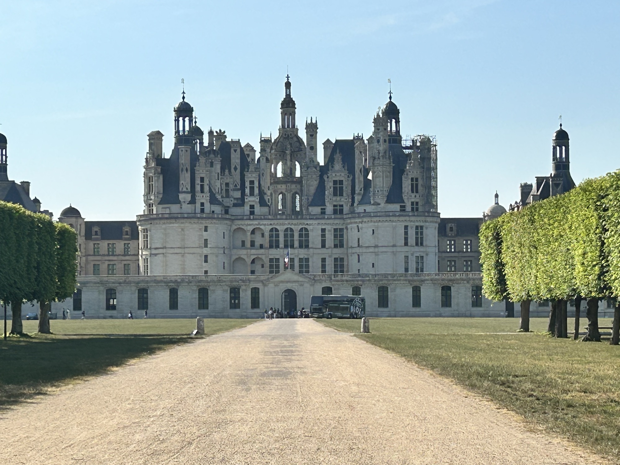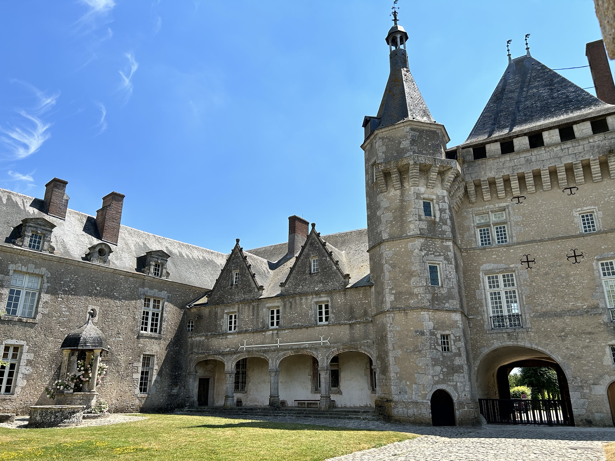 Wir schliefen bis um halb 10, was echt gut war nach der kurzen Nacht. Allerdings war dann der Frühstückshunger schon ziemlich groß und Nils war nicht so begeistert dass wir noch ein paar Minuten brauchten bis alles fertig war. Wir aßen heute morgen mal Müsli, da es keine Bäckerei in der näheren Umgebung gab. Wir kamen noch ein bisschen ins Gespräch mit unseren Nachbarn, die aus Brüssel kamen und sehr gut Englisch sprachen. Sie hatten eine kleine Tochter und waren in der Elternzeit 5 Wochen unterwegs gewesen. Das war ihre letzte Station bevor sie wieder zu Hause ankamen in der Stadtwohnung ohne Garten. Wir konnten hier auf die Toilette gehen und auch noch mal Geschirr spülen, es gab einen kleinen Sandspielplatz mit Rutschen und der ganze Garten und das Gelände des Hofes waren sehr malerisch. Um 11:30 Uhr waren wir noch mit der Herrin des Hauses in ihrem Hofladen verabredet. Sie verkauften dort alle möglichen Produkte, zu denen sie ihre Haselnüsse verarbeiteten. Wir kauften div. Nussmuse und Schokonussmuse und bezahlten den Stellplatz. Die Kommunikation war nur auf Französisch möglich, aber wir kamen zurecht, auch wenn es sehr sehr holprig war. Zum Glück gab es in der heutigen Zeit Google Translate, da konnte man seinen Text ins Handy sprechen und es wurde übersetzt. Das ging natürlich in beide Richtungen. Als alles erledigt war, packten wir langsam die Sachen und machten uns auf den Weg nach Talcy, das war nur ein paar Minuten weg und dort gab es noch ein kleineres Schloss an der Loire. Wir parkten dort, und Miri ging sich das mit den Kids angucken, Benny blieb im Camper und beschäftigte sich noch mit dem Blog, er hatte auch genug von den ganzen Chateaus. Aber wie so oft in dem Urlaub, hatte das noch zu und machte erst um 14 Uhr auf. Zum Glück war es aber nur noch eine Viertelstunde bis dahin. Wir gingen noch mal kurz zurück zum Camper. Mit dem Glockenschlag um 14 Uhr wurden dann die Tore geöffnet und wir konnten das Schloss besichtigen. Wir waren erst mal die einzigen Besucher. Es gab 15 Zimmer, die komplett eingerichtet waren. Es war wirklich alles sehr schön gemacht und man konnte sich gut in vergangene Zeiten zurückversetzen. Auch der Garten drumherum war schön angelegt, es gab einen Brunnen an dem sich eine hellrosa Rose emporrankte und einen großen Schuppen, in dem sich altertümliche Gerätschaften befanden die zum Trauben pressen benutzt wurden. Die Presse wurde von einem riesigen Rad angetrieben, das bestimmt 3-4 Meter im Durchmesser hatte. In einem runden Turm befand sich der Taubenschlag, die Wände bestanden aus lauter kleinen Höhlen, in denen jetzt bunte Tontauben saßen. Als wir fertig waren mit der Besichtigung, trafen wir wieder auf Benny, der direkt gegenüber vom Schloss parken konnte. Dort befand sich ein kleiner länglicher Park mit Picknickbänken, wo wir beschlossen unser Mittagessen zu uns zu nehmen. Es gab die Reste von den Tortellinis und für die Kids zu ihrer Begeisterung Nudeln mit Tomatensauce, was beides Benny zubereitete während Miri mit den Kids eine dortige Sitzgruppe in den Schatten zog. Wir ließen es uns schmecken, mittlerweile war auch wieder gut Hunger vorhanden. Da der Tisch ziemlich verkackt war von den hier überall vorhandenen Ringeltauben, legten wir Claras neues Strandhandtuch als Tischdecke unter, was sie so mittelgut fand, aber es war ok für sie und sah dadurch auch wirklich nach einem schön gedeckten Tisch aus. Das Essen kam gut an und im Anschluss wollte Nils noch etwas spielen. Papa spielte noch Ball mit ihm, was ihm gut gefiel, allerdings war es auch wieder bockheiß. Da Nils heute morgen so lange geschlafen hatte und es jetzt auch schon so spät war, versuchten wir ihn bis Abends wachzulassen. Es klappte auch ganz gut, da wir nur noch kurz mit dem Auto in die nächstgrößere Stadt Muides-sur-Loire fuhren. Die lag an der Loire, wo wir noch ein wenig Zeit am Wasser verbrachten mit Steine werfen, was Nils gut gefiel, Clara war wieder total müde und nicht so gut gelaunt. Es war jetzt aber auch so eine blöde Übergangszeit zwischen Mittag- und Abendessen bevor wir weiter Richtung Heimat fuhren. Wir konnten das nicht so früh machen mit dem Abendessen, sonst werden die Kinder wieder um 10 wach und machen die Nacht wieder zum Tag. Außerdem ist es heiß und jetzt hieß es einfach nur Zeit totschlagen. Das war – nicht nur für die Kids – teilweise ziemlich langweilig. In der Nähe gab es zwei Foodtrucks, wovon der eine auch Crêpes und Eis verkaufte, der andere nur Getränke. Wir hatten vor, wenigstens einmal in Frankreich noch Crêpes zu essen und das als Abendessen zu nehmen. Klingt nicht sinnvoll, war es aber irgendwie hier, da wir super spät zu Mittag gegessen hatten und noch kein richtiger Hunger da war. Da reichte so ein Crêpes als Abendessen. Nachdem wir also einige Zeit an der Loire verbracht hatten, gingen wir dort hin und bestellten für Nils einen Natur-Crêpe mit einer Kugel Vanilleeis obendrauf, für Clara einen Nutella-Banane-Crêpes mit ebenfalls einer Kugel Eis obendrauf, Benny aß einen mit Nutella und Miri den Crêpes des Hauses mit gesalzener Karamelsoße und Mandelsplittern. Es schmeckte sehr lecker und wir saßen hier noch mal in einer schönen Umgebung. Als Nachtisch vom Nachtisch gabs für Benny noch ein Eis (Melone, Joghurt). Wir hätten gerne noch etwas länger hier gesessen aber Nils hatte da was dagegen. Er war sehr aktiv und wollte einfach nur rumlaufen. Also ging es langsam zurück zum Camper. Wir hatten noch eine letzte Sache auf der Todo-Liste, und zwar noch mal in eine franz. Apotheke fahren. Benny wollte seinen Cremevorrat noch mal aufstocken. Miri hatte auch noch ein paar Sachen auf dem Wunschzettel, da es in franz. Apotheken sehr viel gute Kosmetikmarken gibt, die man in Deutschland meist nur wesentlich teurer bekommt. Das Einkaufen war wieder etwas stressig, da Nils nicht auf dem Arm bleiben wollte und sehr viele spannende Sachen zum Ausräumen entdeckte. Wir wechselten un