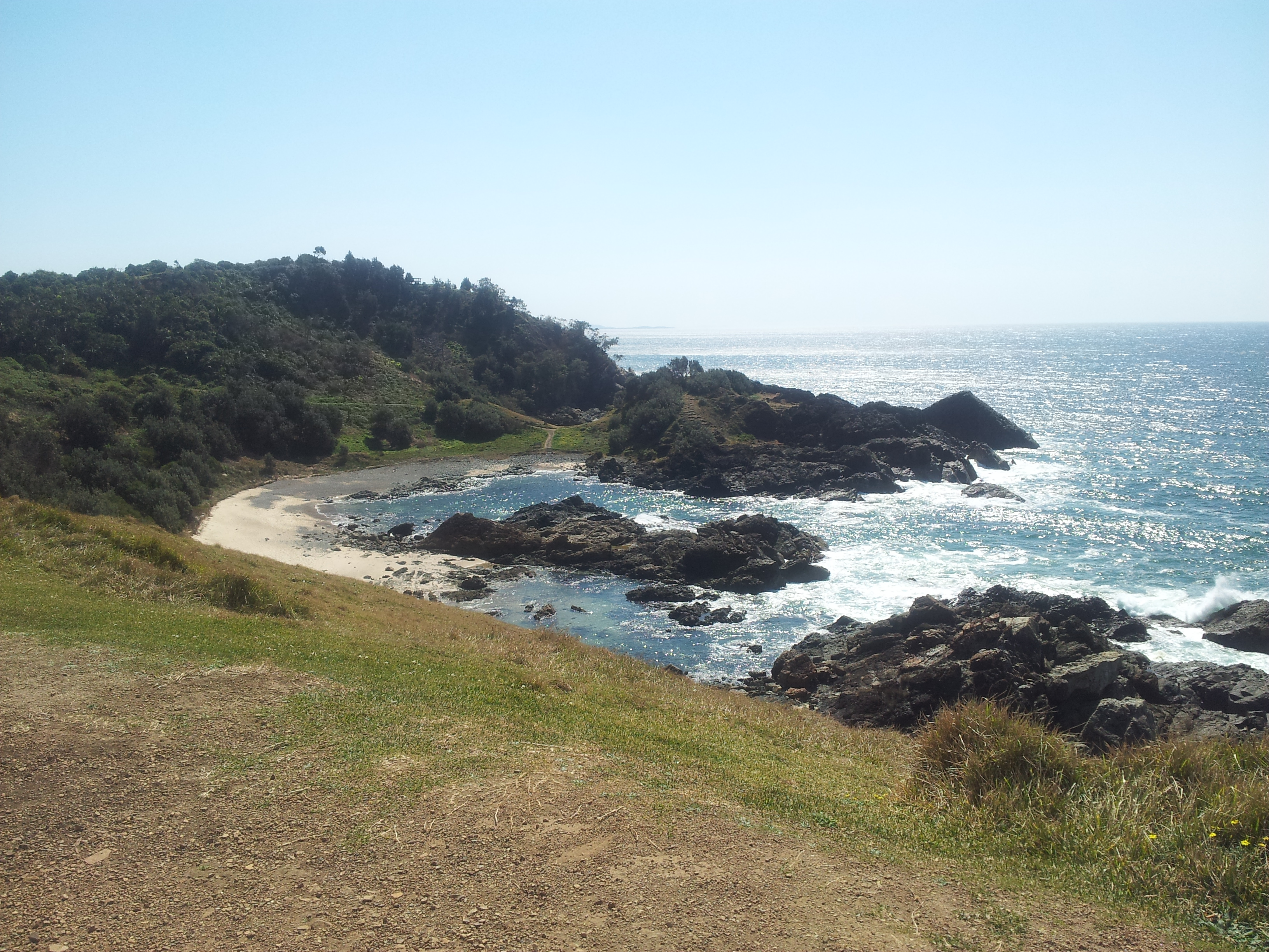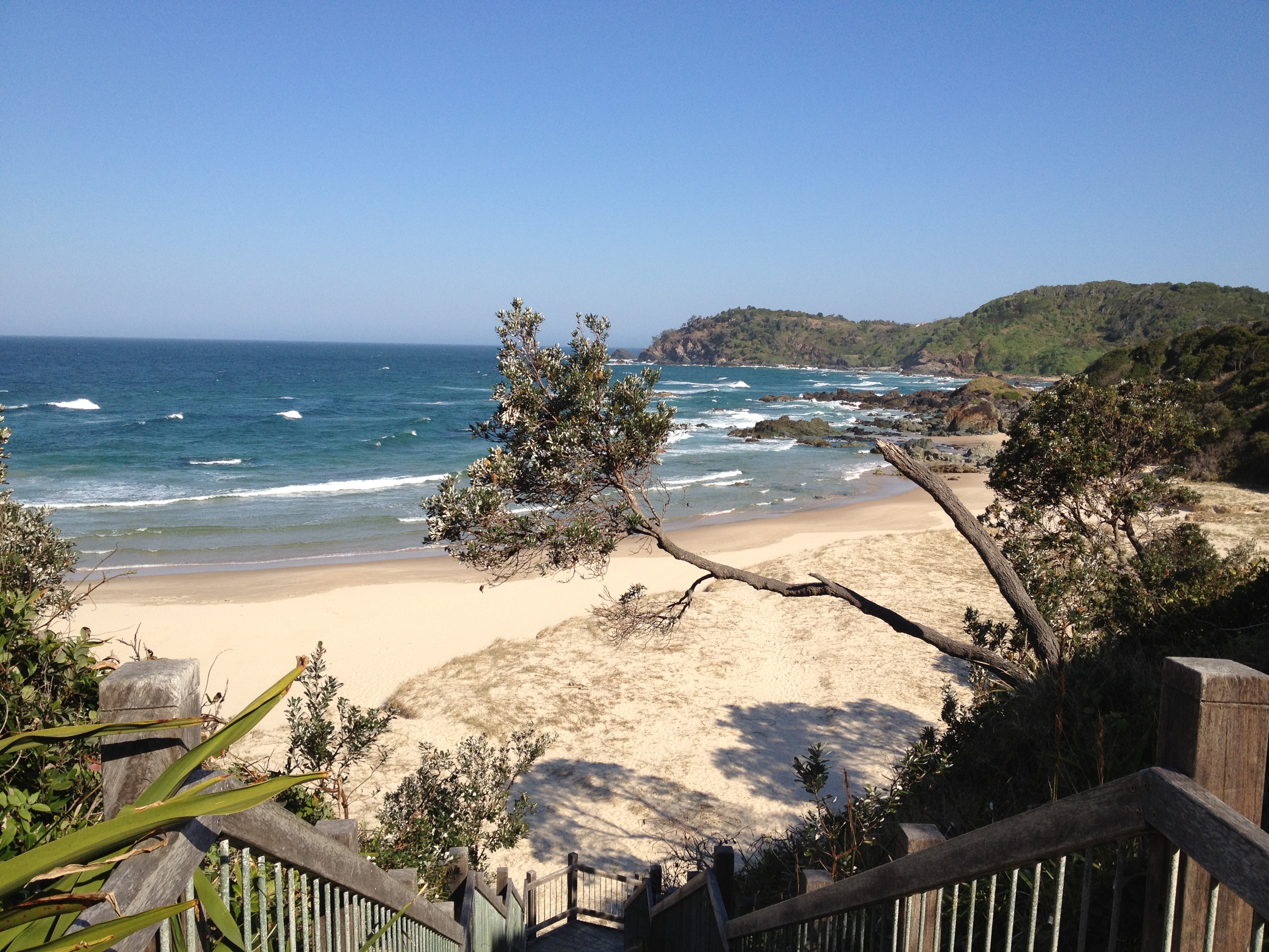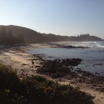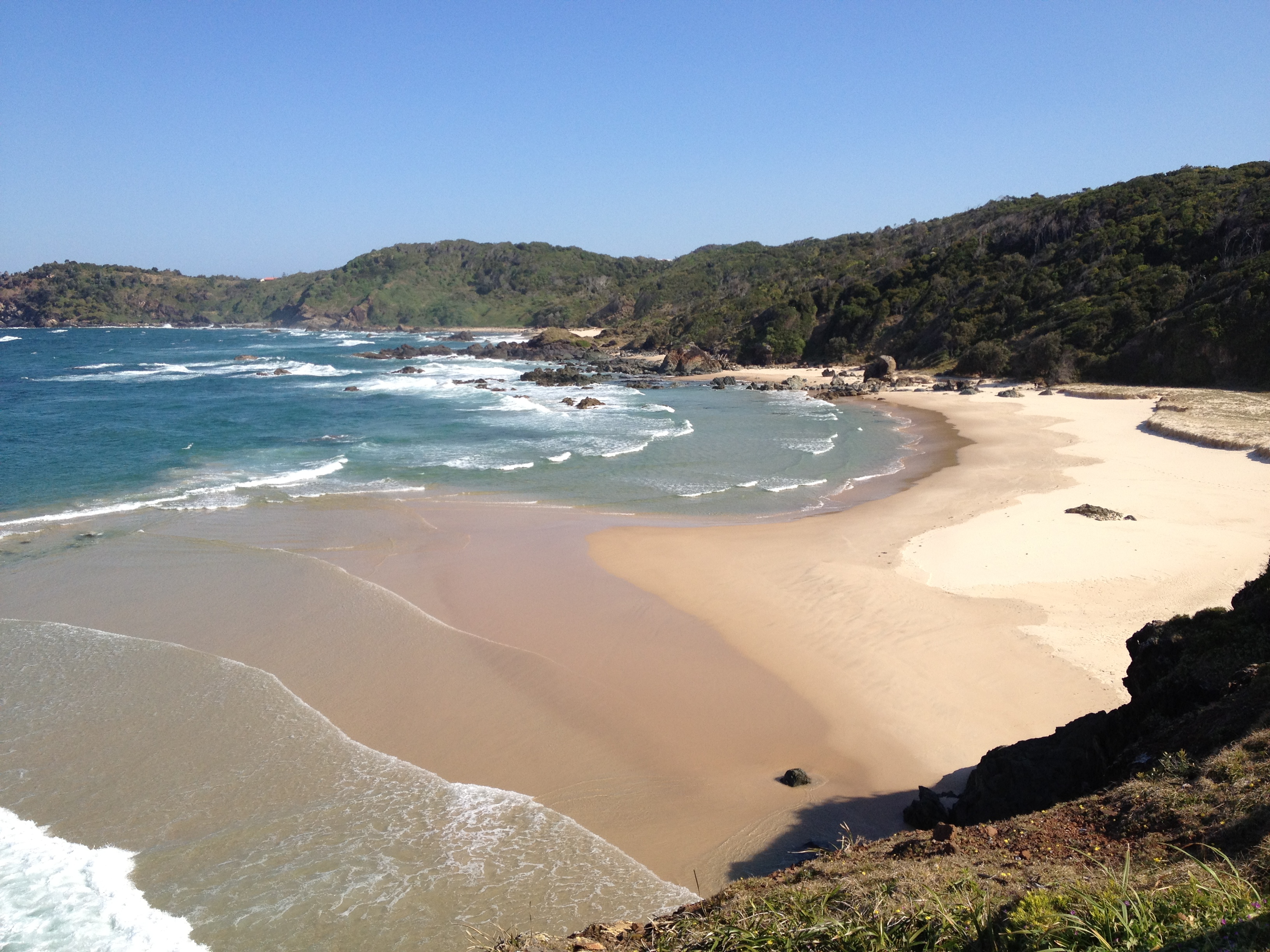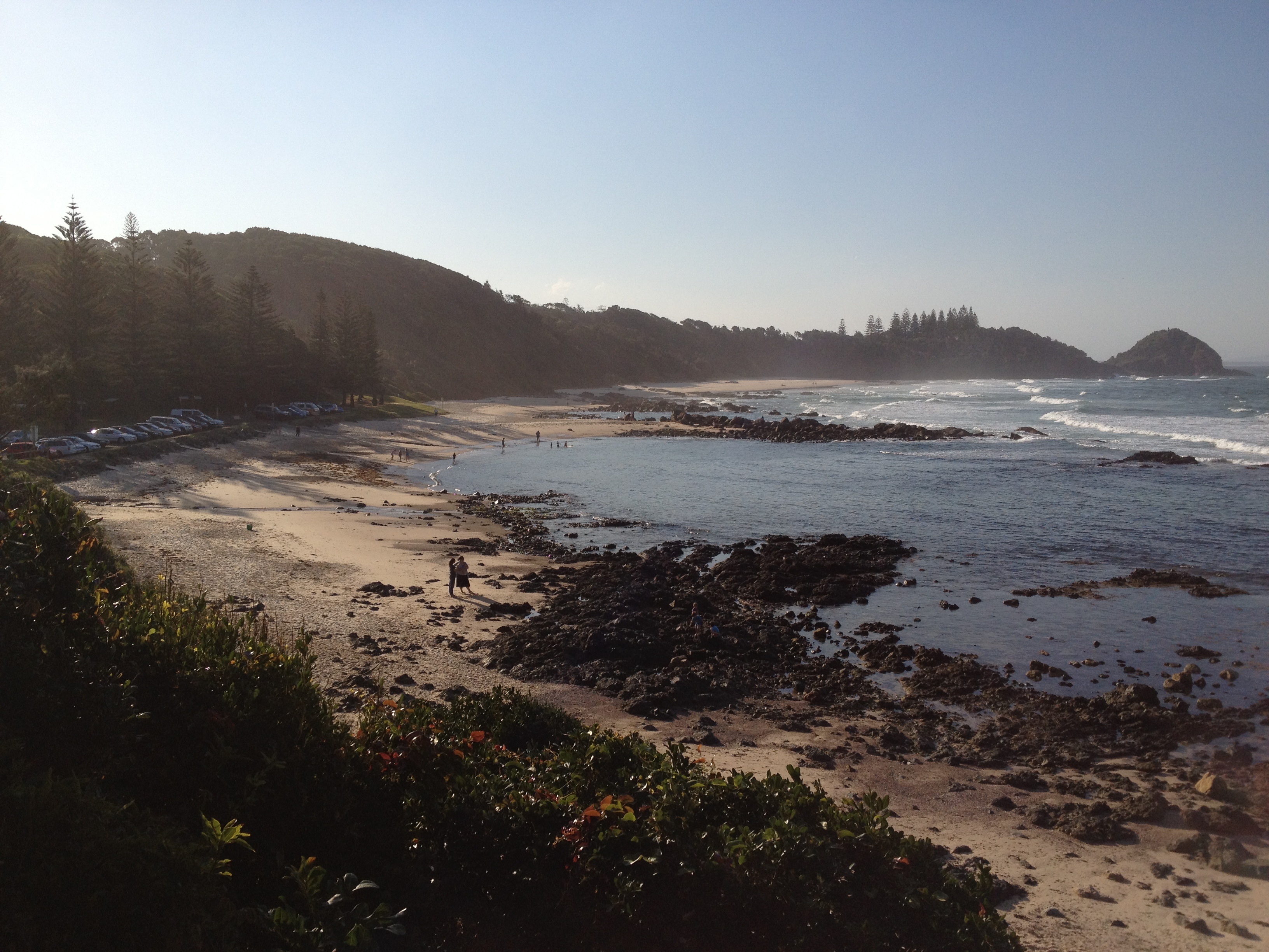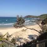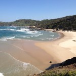 Nach diesen ganzen informativen Veranstaltungen wollten wir noch mal ein bisschen Strandfeeling. In Port gibt es zwei Strände, an denen der Regenwald bis an den Sand reicht. Einen davon, den Miners Beach, der keinen direkten Zugang hat, sondern vom benachbarten Shelly Beach aus erwandert werden will, suchten wir dann noch auf. Der Weg war schon traumhaft, mit immer neuen Aussichten auf kleine felsige Buchten, aber der Strand selbst war der Hammer. Menschenleer, mit ein paar vorgelagerten Felsen, die als Wellenbrecher fungierten, sodass an manchen Stellen aus entgegengesetzten Richtungen Wellen aufeinander zu rollten. Dadurch ergab sich eine beachtliche Strömung, die man nicht unterschätzen sollte. Schwimmen war daher leider nicht drin.