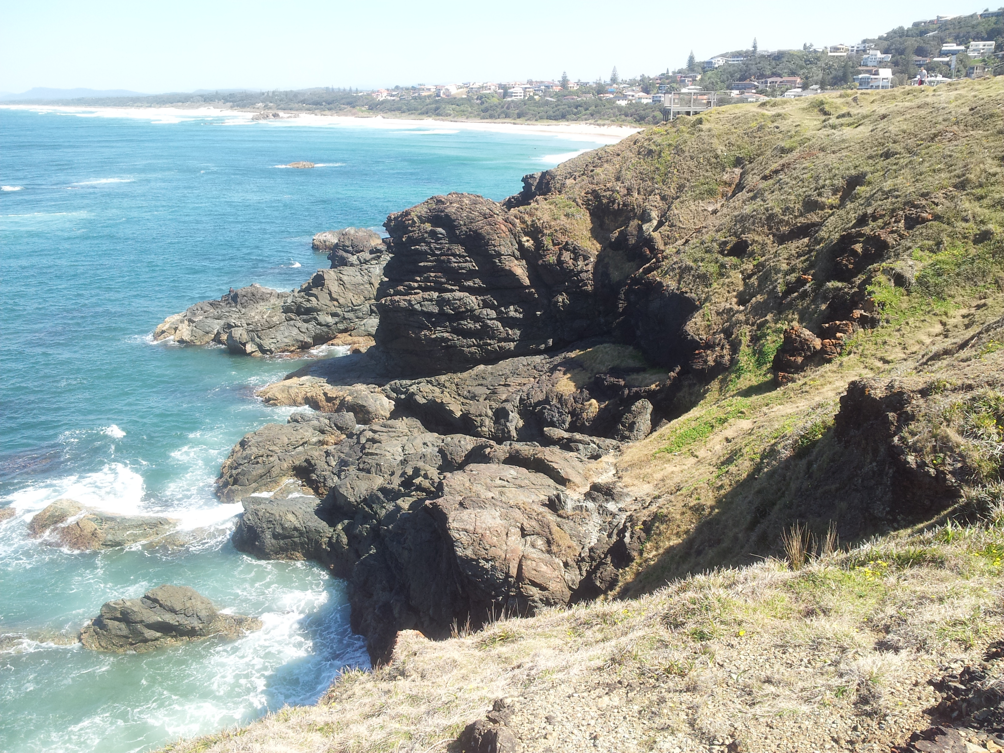 In Port Macquarie gibt es ein Naturrreservat namens Sea Acres, das wir besichtigen wollten. Auf der Suche nach dem „Eingang“ kamen wir an einen Leuchtturm, auf dessen einer Seite noch eine kleine Bucht mit den hier typischen Felsen war. Ein kleiner Eindruck: