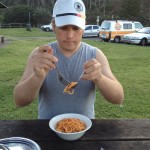 In Port Macquarie hatten wir auch wieder Glück und fanden für unseren Johnny einen Stellplatz am Meer. Zwar war der Blick nicht so gut, da er ziemlich zugewachsen war, aber man hörte das Meer rauschen. 🙂 Nach dem obligatorischen Frühstück gingen wir dann Koalas gucken. 🙂 In „Port“, wie die Einheimischen sagen, gibt es nämlich ein Koala Hospital. Als wir ankamen, wurde uns erzählt, dass gerade ein Koalamädchen eingeliefert worden war. Durch eine Glasscheibe konnten wir beobachten, wie sie untersucht wurde. Durch den starken Wind war sie von ihrem Baum auf ein Autodach gefallen, hatte sich aber zum Glück kaum verletzt. Wir gingen anschließend über das Gelände, wo es verschiedene Gehege gab, die so gestaltet waren, dass zwar in jedem mindestens ein Baum steht, die Koalas aber nicht in andere Gehege gelangen können. Da sie sehr faul sind und nicht springen können, ist das nicht sooo schwierig. 😉 Bei einigen Koalas konnte man dann auch ihre Leidensgeschichte lesen. Viele waren Bränden zum Opfer gefallen. Eine Koaladame z.B. fand man ganz oben an einen Baumstamm geklammert, alles um sie herum war abgebrannt. Sie selbst hatte so schwere Verbrennungen, dass sie wochenlang die Augen nicht öffnen konnte. Letzendlich kam sie aber durch und hat im Koala Hospital sogar noch zwei Babys bekommen, die in die Wildnis entlassen werden konnten. Eine andere war von einem Auto angefahren worden und musste anschließend ein Bein amputiert bekommen. Einer der vielen ehrenamtlichen Pfleger erzählte uns, dass sie trotzdem sehr gut klettert (aber nicht gut genug für die Freiheit, weswegen sie einer der ständigen Bewohner, ein so genannter „Resident“ ist) aber genau am heutigen Tag noch mal einen Unfall hatte, da der Ast, auf dem sie gesessen hatte, durch den starken Wind abgebrochen war und sie sich so am Auge verletzt hatte, dass sie jetzt auch noch auf einem Auge blind ist… Da gerade Fütterungszeit war, konnten wir einige der Tiere, die ja hauptsächlich schlafen (20 h am Tag – da fragt man sich doch, ob man im nächsten Leben kein Koala werden möchte 😉 ) richtig in Aktion erleben. Von dem Pfleger erfuhren wir auch nocht, dass sie drei verschiedene Sorten Eukalyptus bekommen, die täglich von einem Experten angeliefert werden. Das Problem ist nämlich, dass es weit über 200 Eukalyptusarten gibt, wovon aber nur ca. 60 von Koalas gefressen werden. Anschließend gaben wir noch ein bisschen Geld für Souvenirs aus, da der Erlös einem guten Zweck zukam. Das Hospital bekommt nämlich keinerlei Zuschüsse vom Staat. Währenddessen kam noch mal der Pfleger, um uns darauf aufmerksam zu machen, dass Barry, ein etwas älterer Koala mit Buckel seine Zusatznahrung bekommt. Diese bestand hauptsächlich aus Sojamilch, die er genüßlich trank.