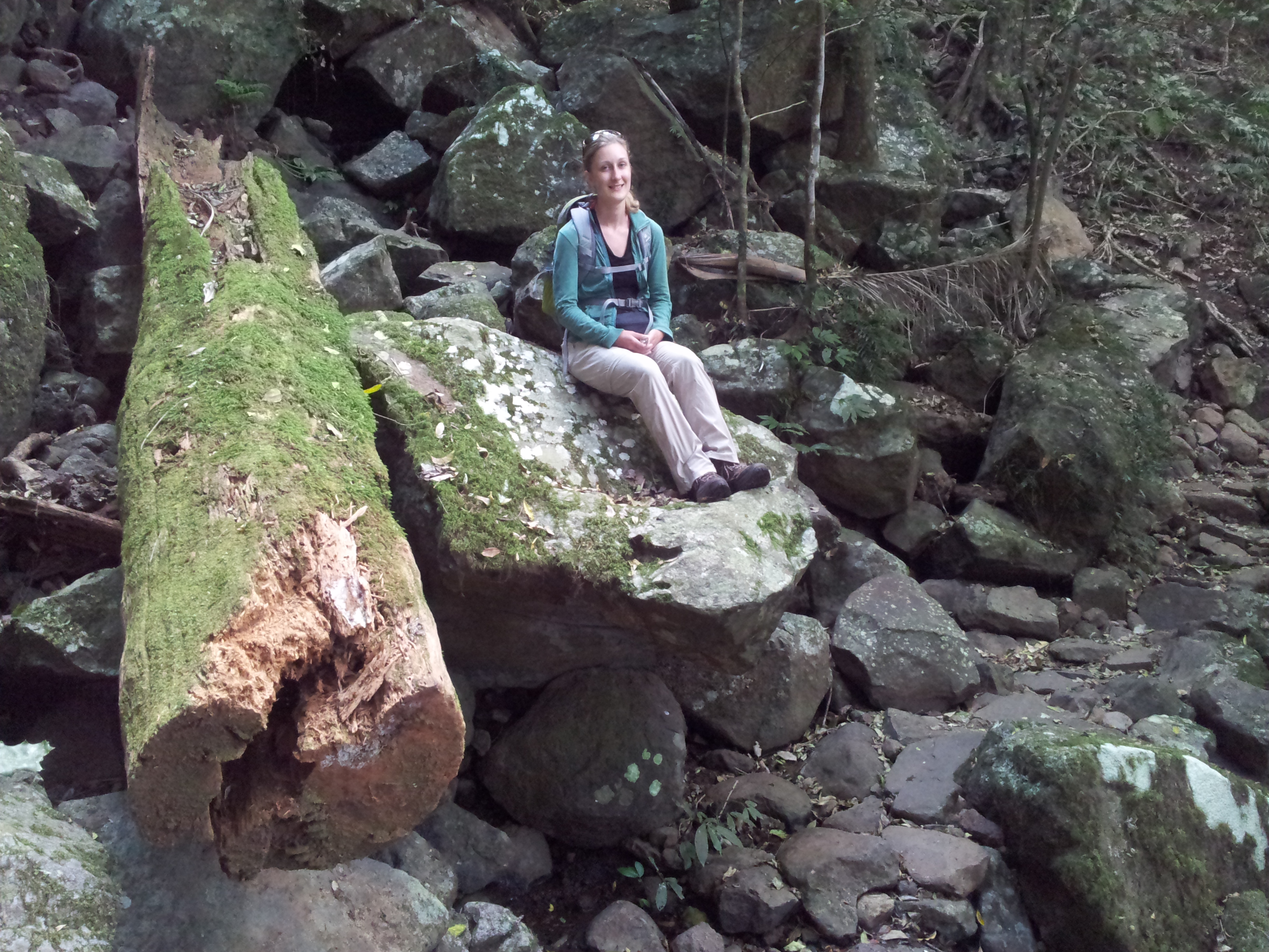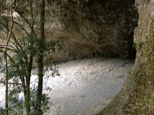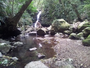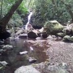 Mal wieder standen wir hier und waren sprachlos. Dieser Ort war wirklich magisch (fast wie im Film). Aber da der Mann im Infocenter uns empfohlen hatte, noch 500 m weiter zu gehen, rissen wir uns irgendwann wieder los. Wir gingen in Richtung des linken Wasserfalls und der Weg führte nun mehrmals über den Bach, der diesen Wasserfall speiste. Schließlich kamen wir noch mal an einen kleinen Wasserfall, der mit mehr Regen wohl etwas spektakulärer daherkommt, aber auch sehr schön war.