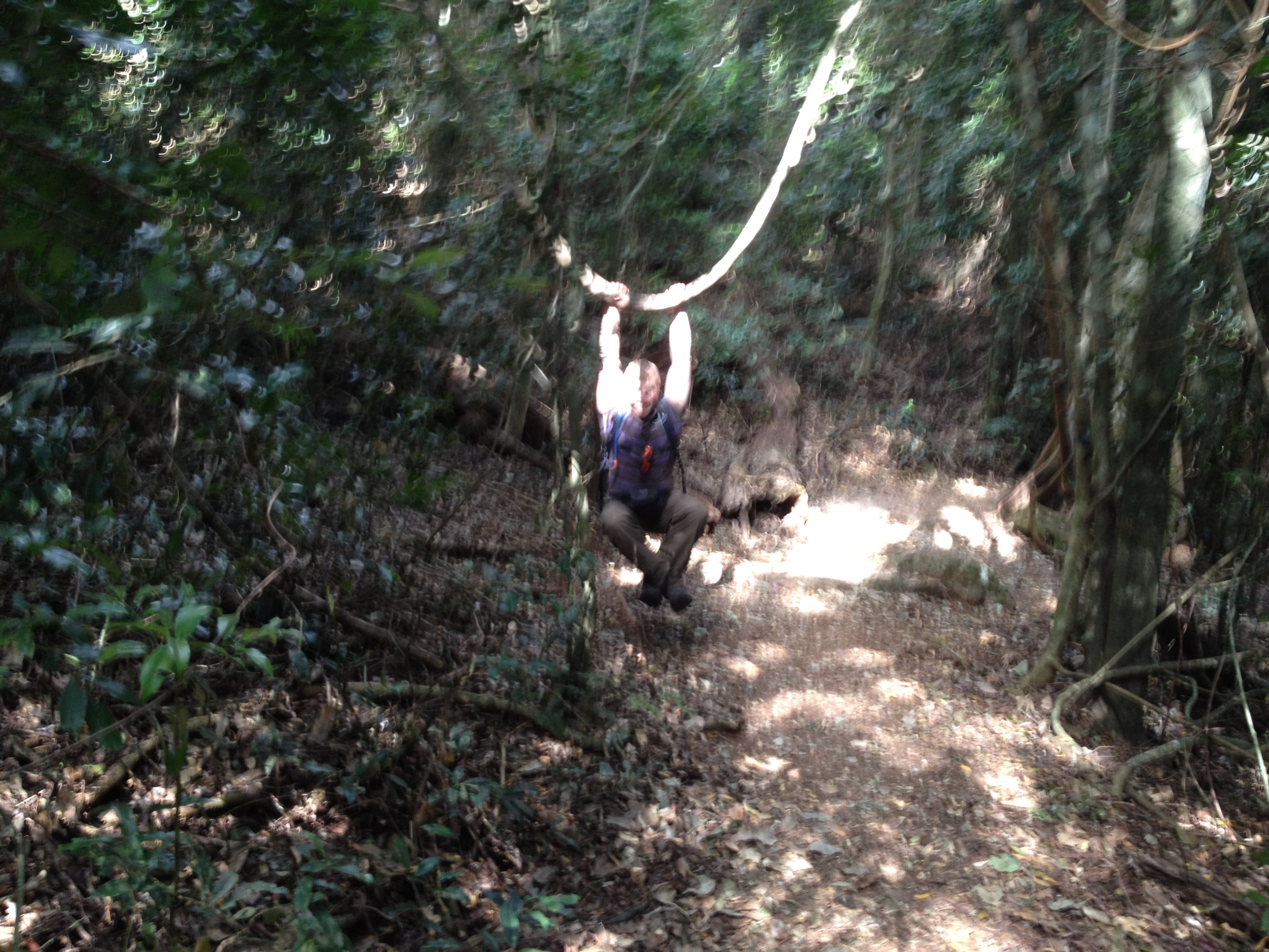 Außerdem hatten wir uns eine Karte geholt, die vor dem Visitor Centre ausgelegt war und hatten entschlossen, den dort beschriebenen 5km langen Cave Circuit (Höhlenrundweg) zu wandern. Ganz am Anfang des Weges konnten wir uns jedenfalls schon wie Tarzan und Jane fühlen, denn eine Liane hatte hier eine natürliche Schaukel geschaffen, die Miri todesmutig ausprobierte. (Die Liane hielt tatsächlich und man konnte super schaukeln!). Fotos haben wir leider vergessen zu machen, gibt nur Filmaufnahmen. Die Höhle stellte sich dann als eine Art Felsenüberhang heraus, der von den hier einst lebenden Aboriginee-Stamm als Zufluchtsort während schlechten Wetters genutzt worden war.