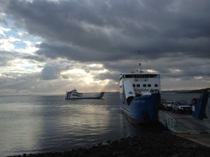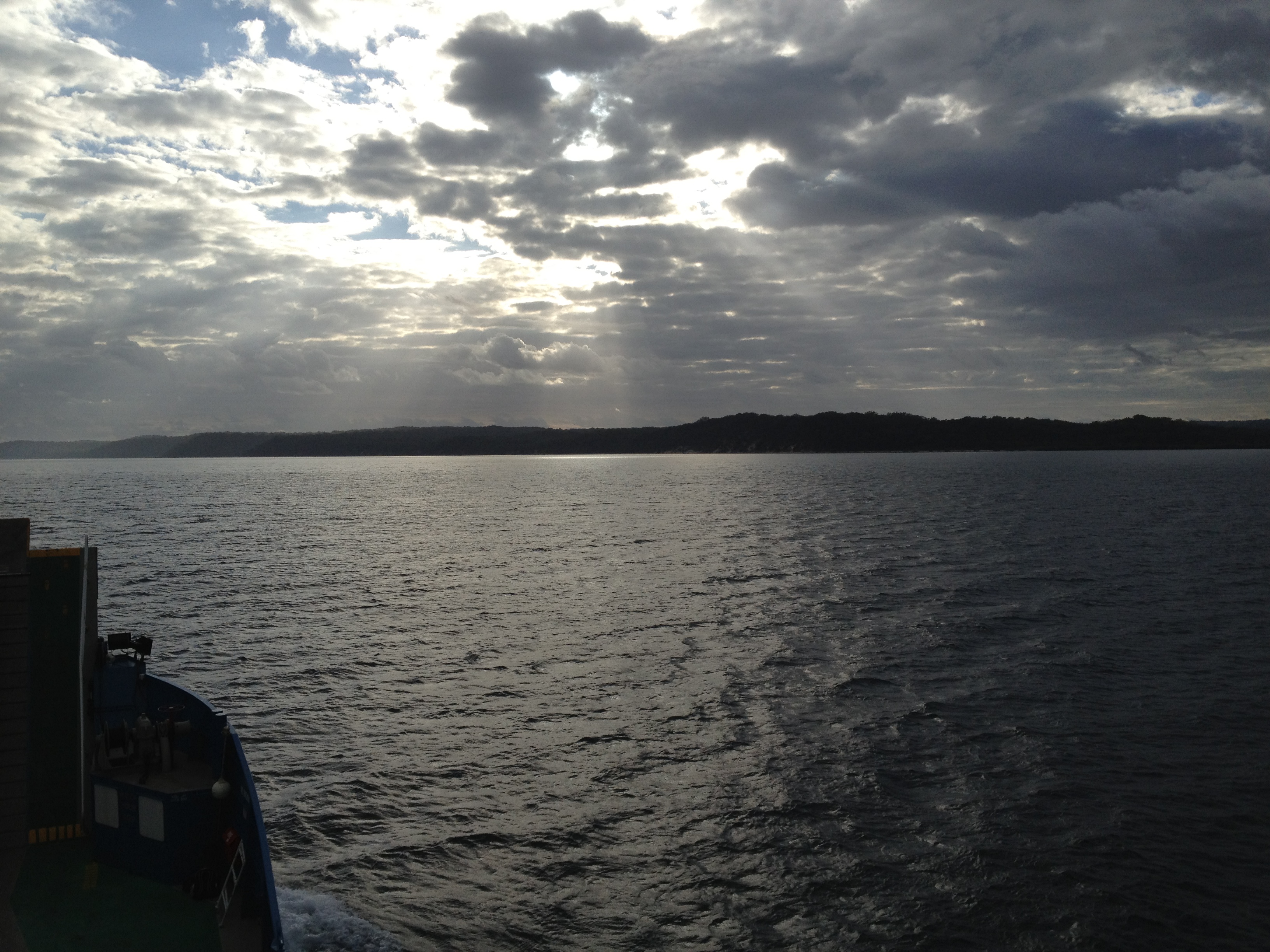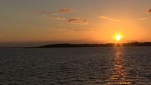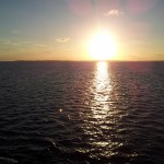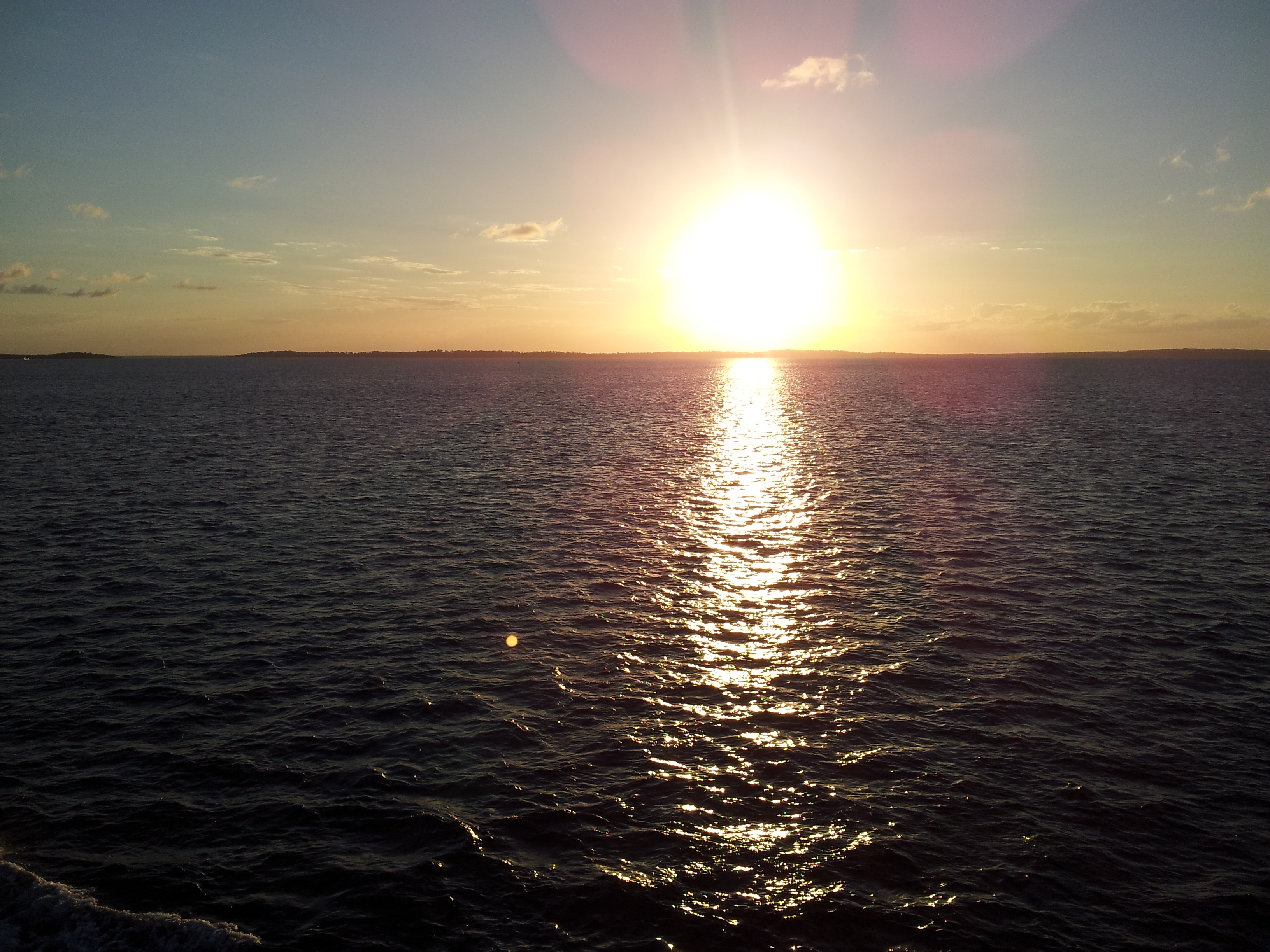 Auf die Fähre mussten wir nicht mehr lange warten. Mit einem Logenplatz fuhren wir dann gen Westen und waren genau pünktlich zum Sonnenuntergang.
