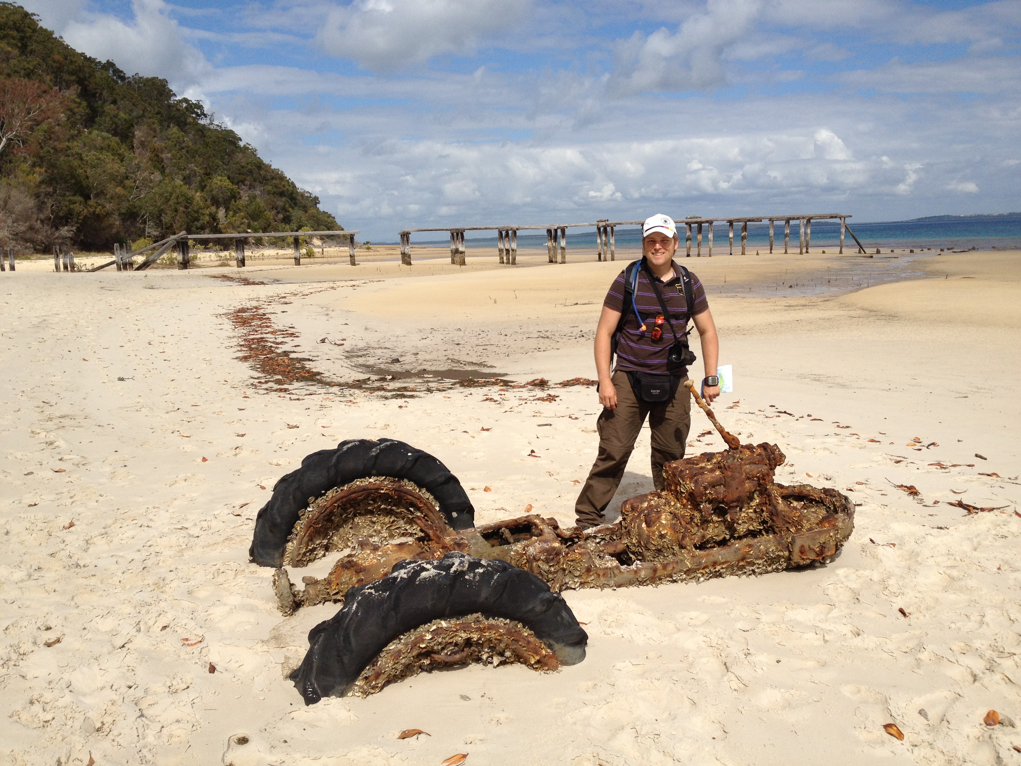 Dann ging es irgendwann komplett runter an den Strand, wo wir eine Art Wrack entdeckten (womöglich ein etwas älteres Traktormodell):