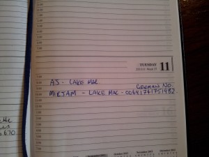Nach den insgesamt 23 km waren wir dann heilfroh, als wir in dem Hotel ankamen. Völlig erschöpft meldeten wir uns zurück und konnten noch ein Foto von unserem Eintrag im Wandererbuch machen. Hier sieht man übrigens, dass außer uns nur EIN anderer Mensch am heutigen Tag gewandert ist, bei dem es sich um einen Hotelangestellten handelt, der die Strecke zum Lake Mackenzie mind. 2x die Woche geht.