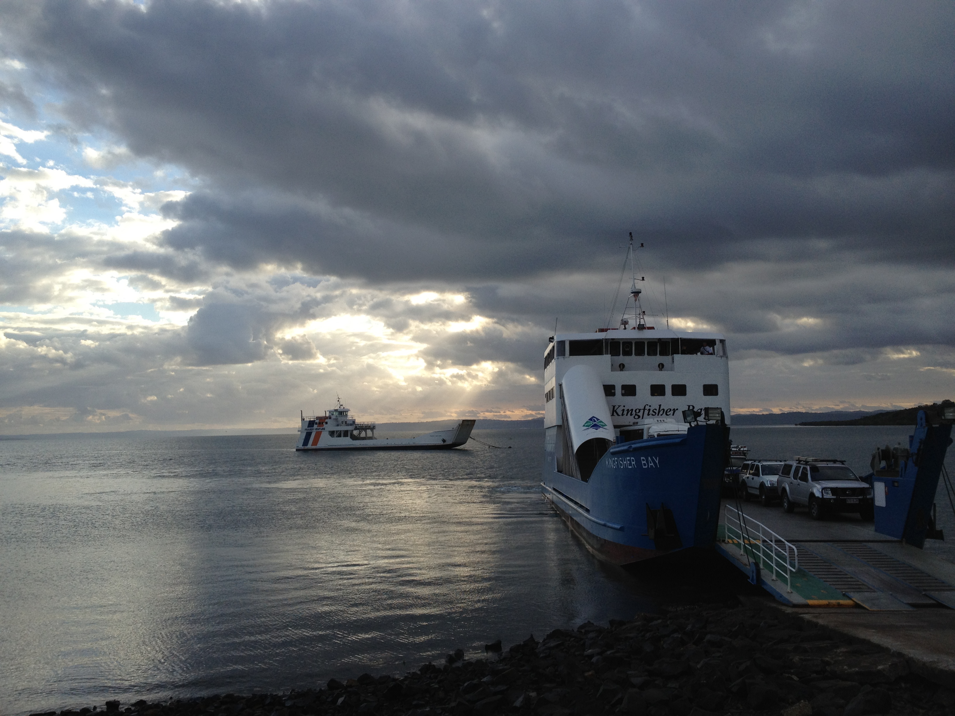 Wie schon erwähnt wollten wir um 6:45 Uhr mit der Fähre nach Fraser Island fahren. Der Wecker klingelte pünktlich und wir frühstückten noch schnell (etwas in Hetze, aber wir schafften es noch rechtzeitig) und besorgten unsere Fährtickets. Zum Glück hatte Benny am Abend schon unsere Rucksäcke gepackt, denn die Zeit war doch etwas knapp bemessen, so dass die Fähre in dem Moment, in dem wir drauf gingen, schon ablegte. (Das war aber 2 min zu früh! Die waren nicht eingeplant gewesen. ;-))