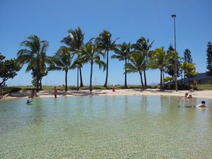 Auf dem Weg entdeckten wir noch die „Lagoon“, ein frei zugängliches Schwimmbad direkt neben dem Meer, das den Bewohnern das Schwimmen auch im Sommer, wenn hier Stinger-Season (Quallensaison) ist, ermöglichen soll. Zwar fängt diese Zeit erst Ende Oktober an, aber die Lagune ist wirklich schön angelegt, so dass wir uns entschlossen, hier den restlichen Nachmittag zu verbringen. Im Schatten einer Palme hatten wir mal etwas Zeit zum Lesen und Relaxen.