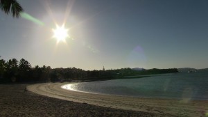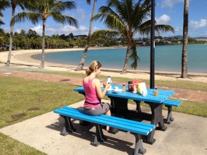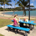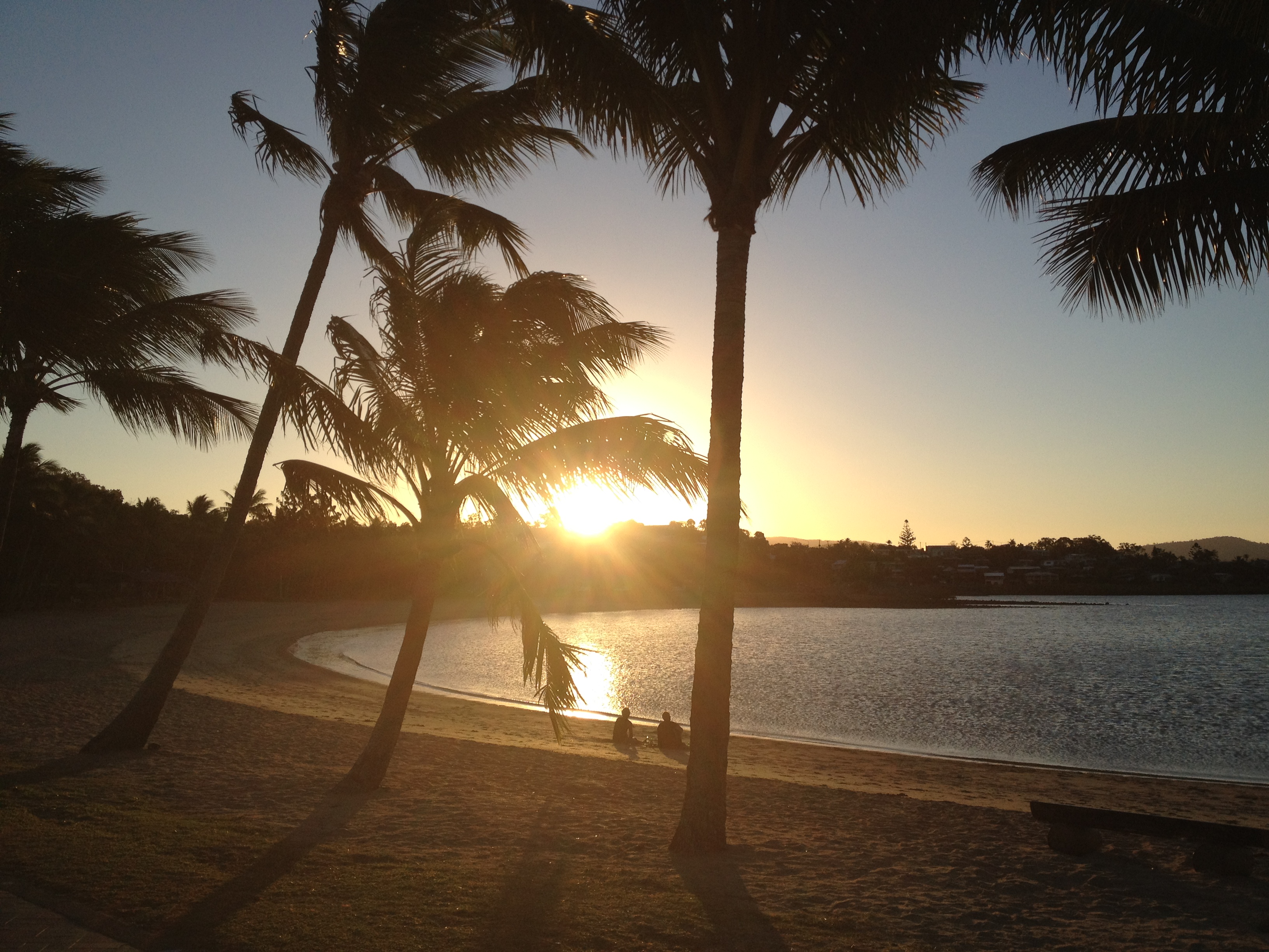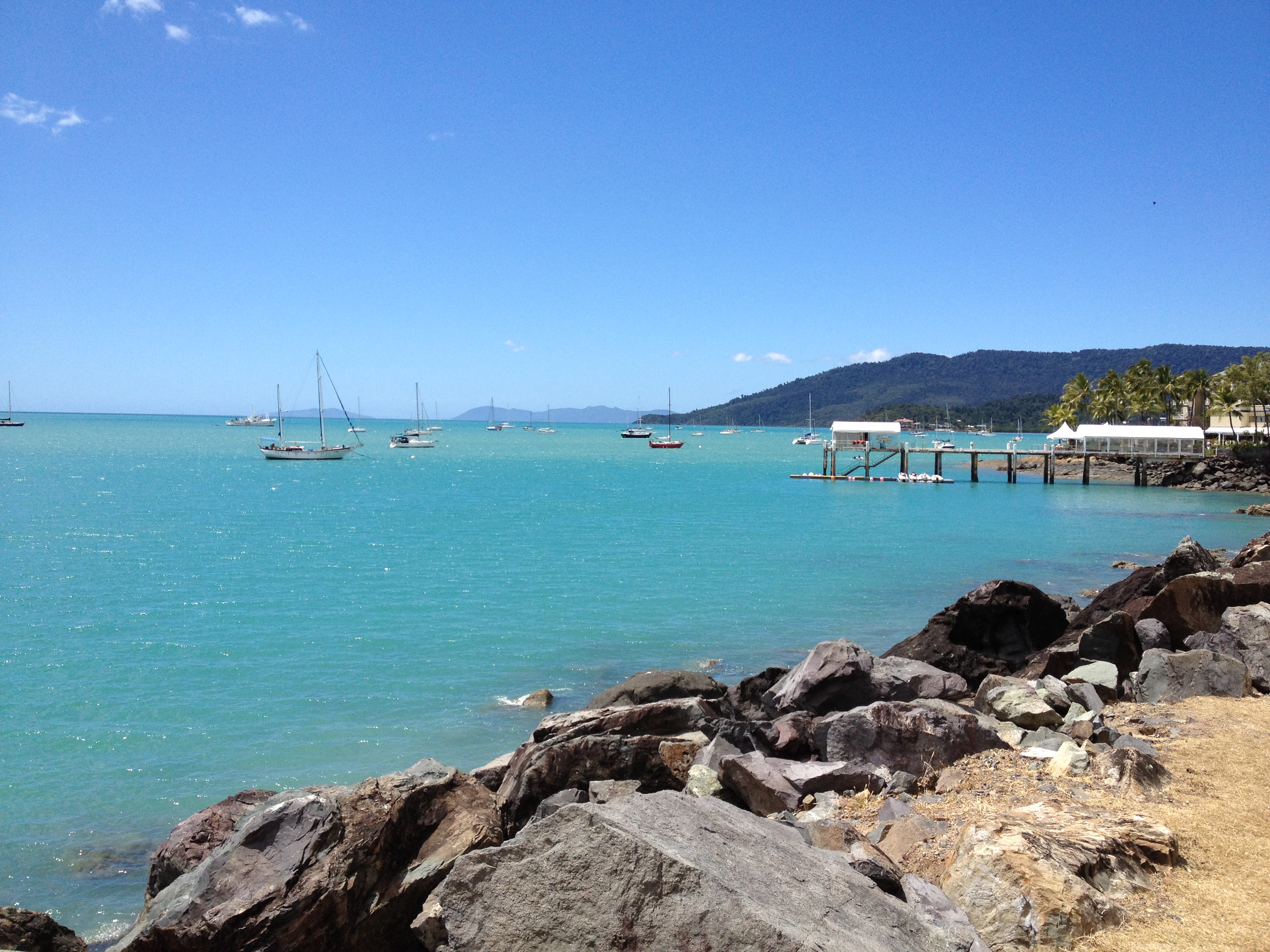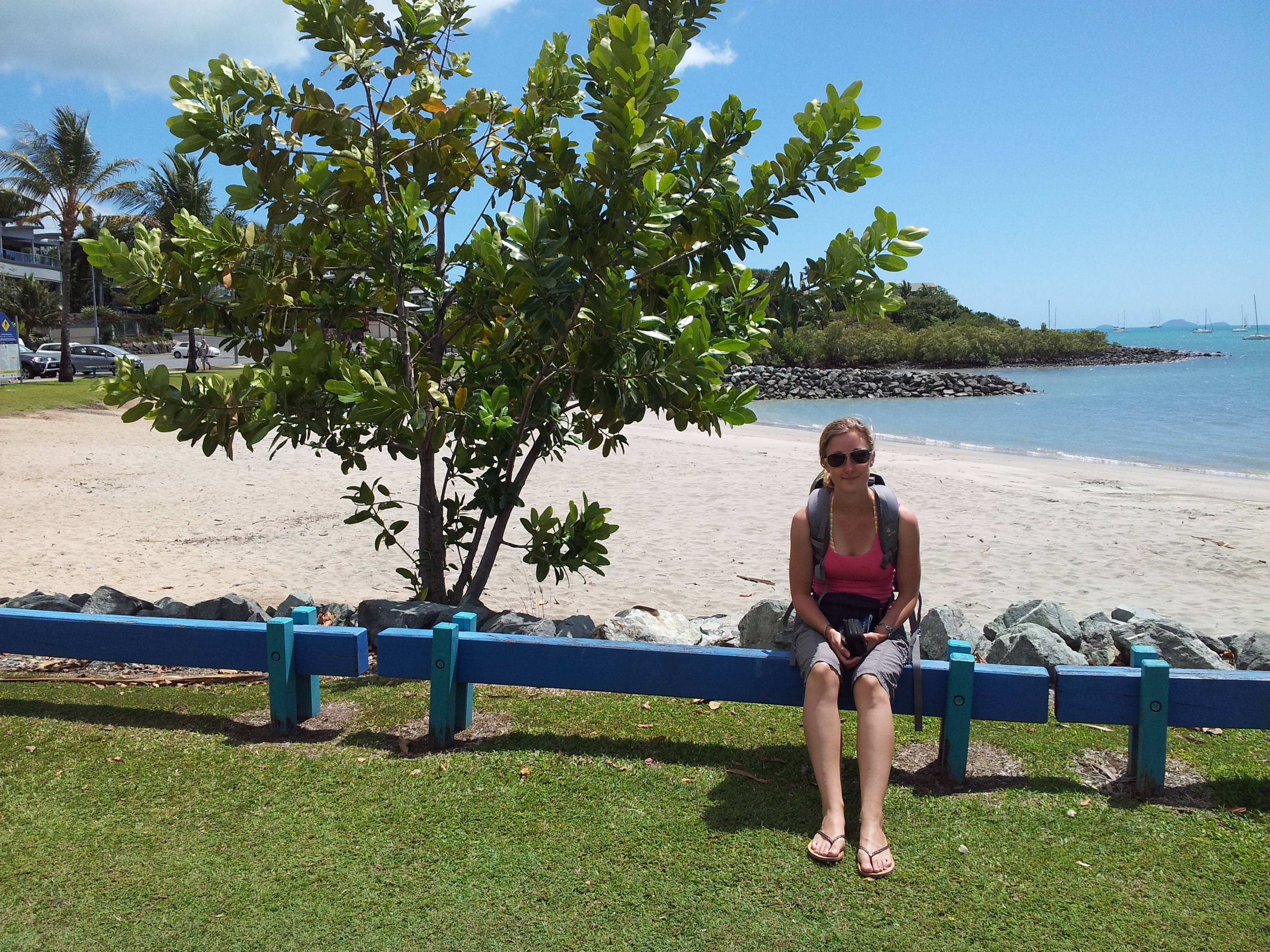 Beschwingt ging es dann nach Airlie Beach, wo wir erst einmal die (diesmal existierende und geöffnete) Tourist Information aufsuchten und mit vielen Infos eingedeckt wurden. Wir entschieden uns dann aber, erst auf der Rückreise eine der Touren zu machen, da wir jetzt erst mal ins Tauchen investieren wollen und dann mal gucken was noch übrig ist. Uns wurden noch Tipps für unseren Tag in Airlie Beach gegeben, den wir hauptsächlich am Strand verbringen wollten, da Miris Waden noch ganz schön mitgenommen sind von der Fraser Island-Tour. Aber erst mal ging es zum Frühstück an den Strand. 🙂