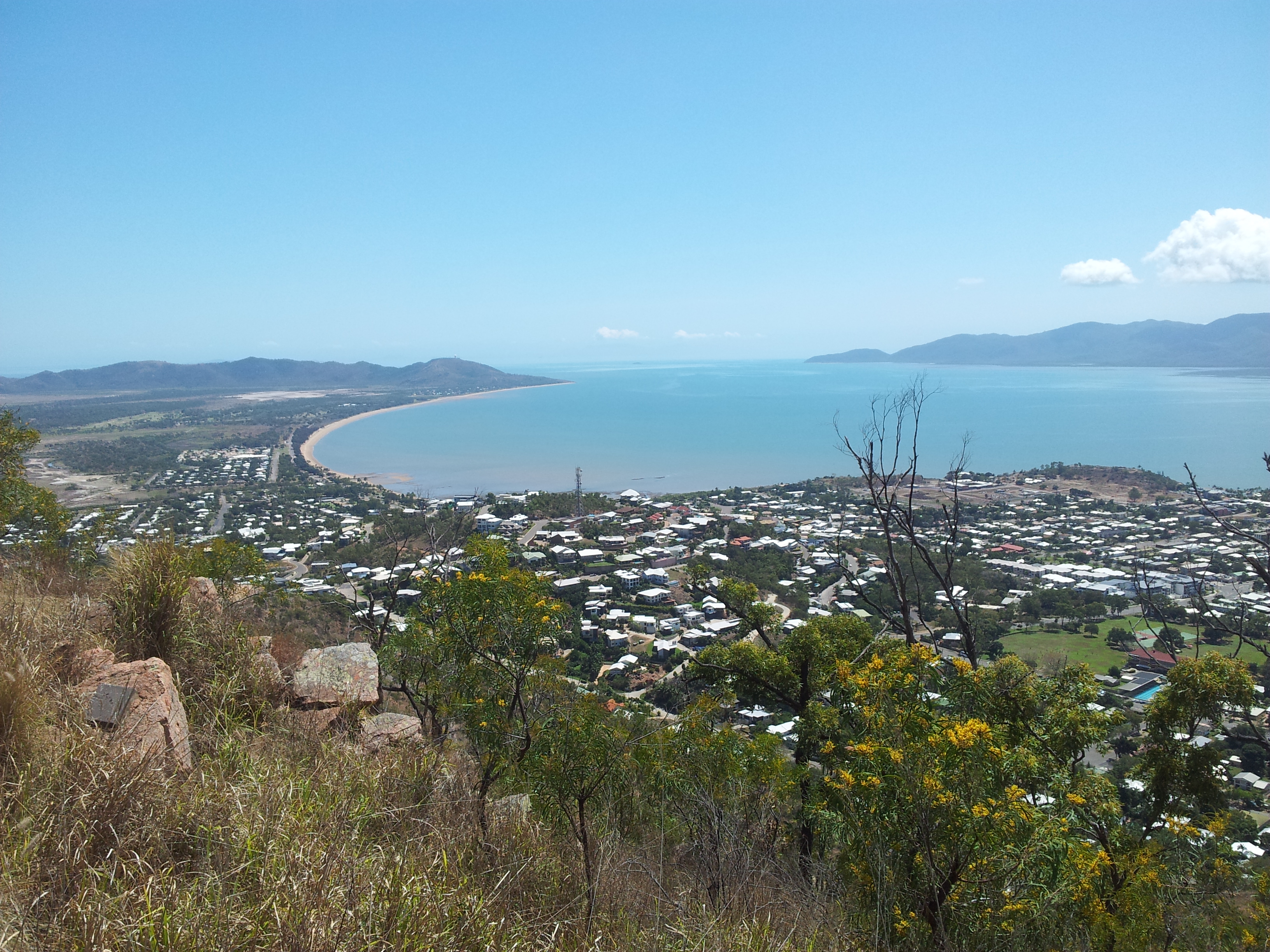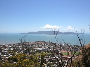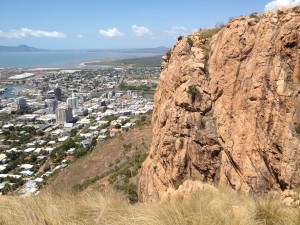 Wir hatten entschieden, erst mal auf den Castle Hill zu fahren, einen riesigen Felsen, der über der Stadt thront. Von einem Castle (Schloss) ist dort aber nichts zu sehen. Aber man hat eine tolle Aussicht über die Stadt, die verschiedenen Flüsse, das Meer und Magnetic Island, eine Insel 8km vor der Küste. Der Name kommt übrigens daher, dass der Kompass von James Cook, dem Entdecker Australiens, vor der Insel anfing verrückt zu spielen und egal wo er sich befand zur Inselmitte zeigte.