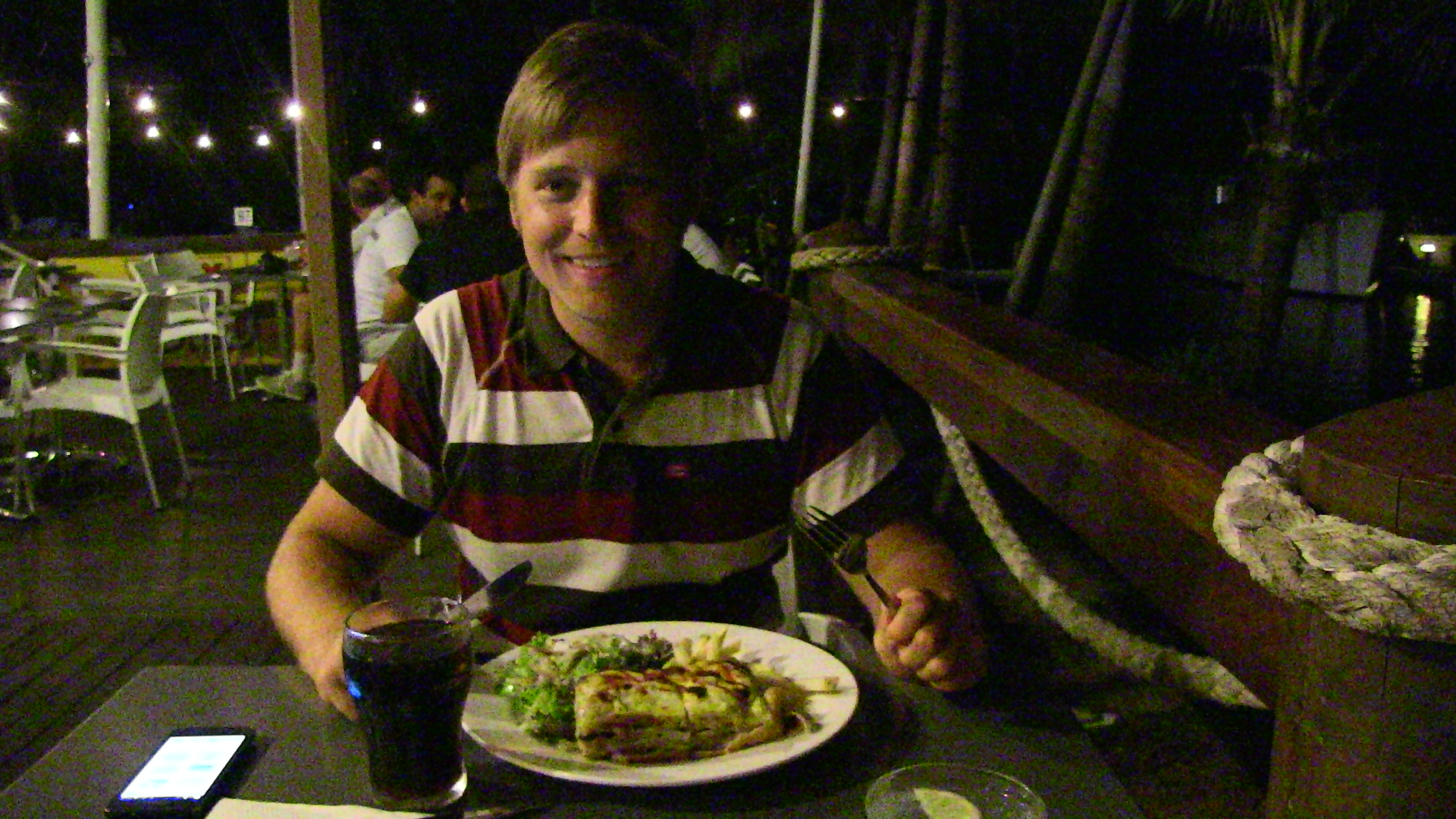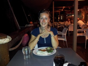 Wir gönnten uns dann noch ein bisschen Luxus und gingen im Yacht Club essen! Benny aß eine Fischlasagne mit lokalem Rifffisch und Mirjam Tandoori-Hühnchen mit Reis:
