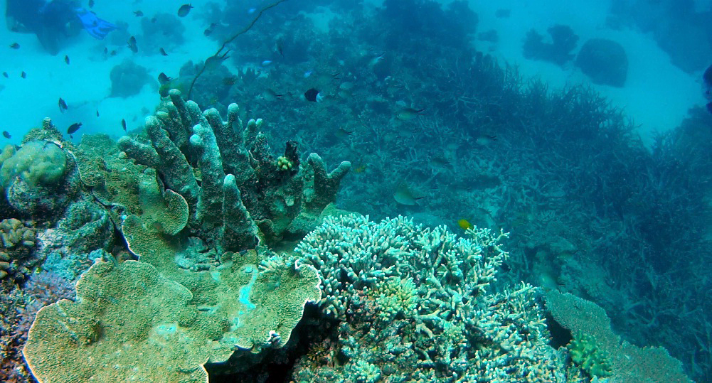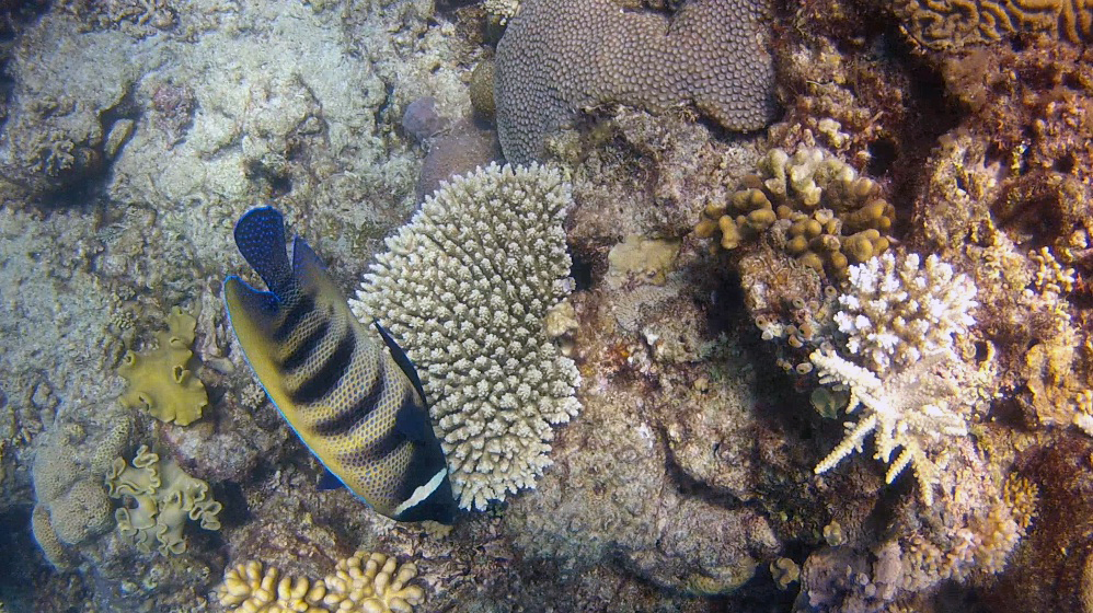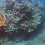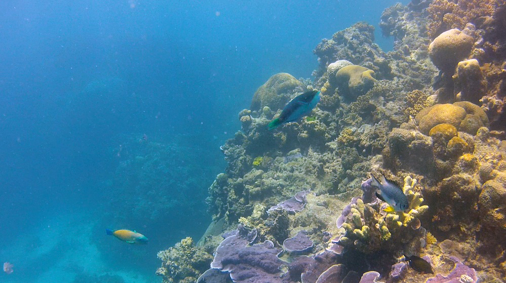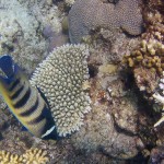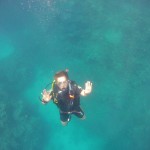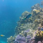 Und kurz darauf ging es auch schon mit einem großen Schritt vom Boot in die Fluten. Nachdem Miri zuerst etwas Probleme hatte runter zu gehen (manchmal dauert das etwas) und Benny von einem Schnorchler den Lungenautomaten aus dem Mund getreten bekommen hatte, lagen die Schwierigkeiten auch schon hinter uns und es war nur noch schön. Zwar waren die Korallen nicht ganz so bunt wie wir es uns vorgestellt haben, aber es gab viele kleine Korallenfische zu bewundern.