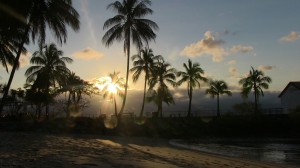Den Sonnenuntergang sahen wir uns von einem Steg aus an, der früher zum Verschiffen von Zuckerrohr genutzt wurde. Dann fuhr auch noch das Krokodilschiff vorbei, mit dem wir am Montag mitgefahren waren. Somit haben wir dann doch noch den tollen Sonnenuntergang im Hafen gesehen, von dem der Bootsführer der Lady Dougles so geschwärmt hat.
