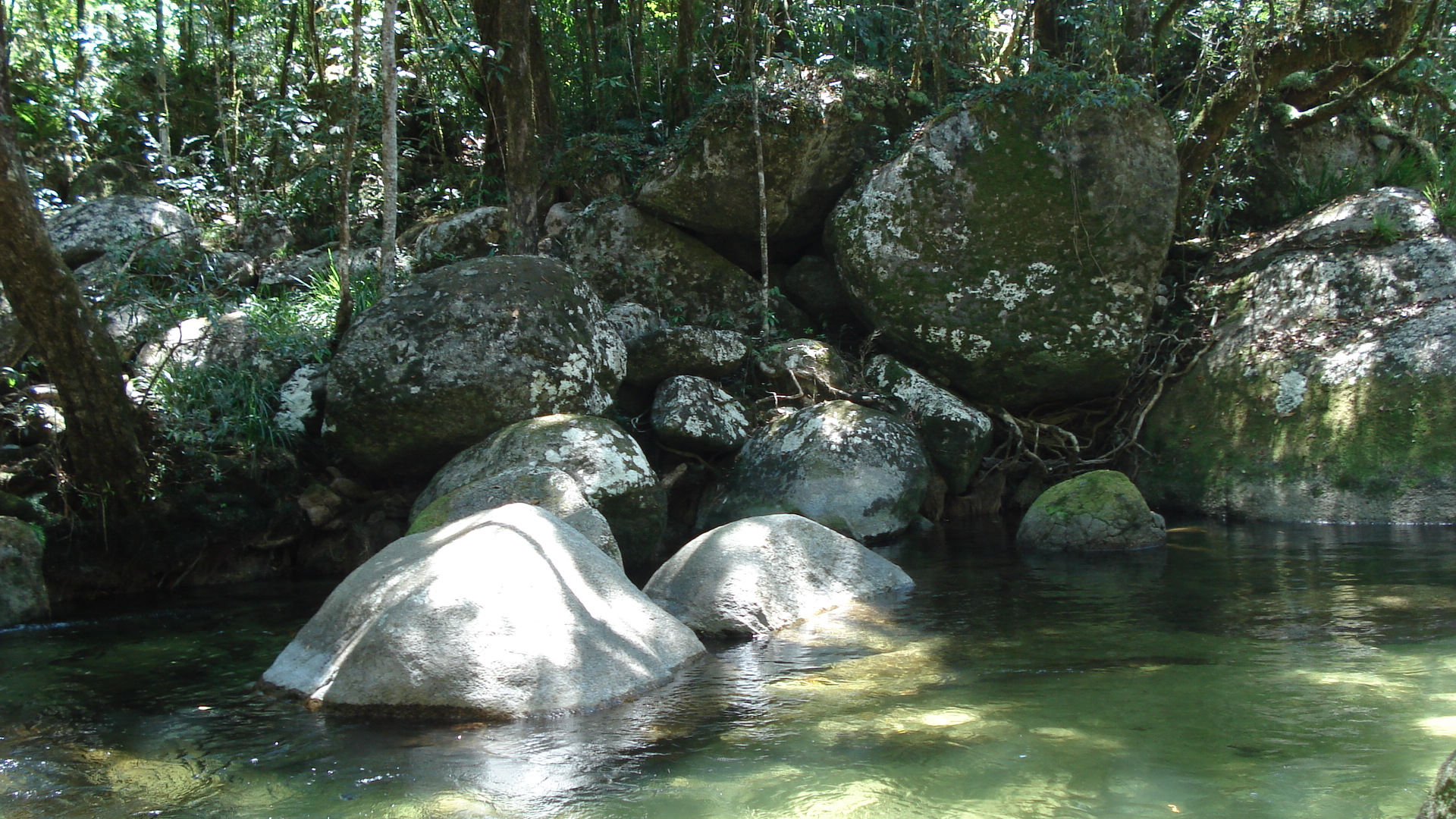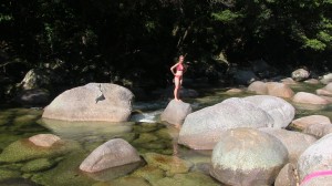Auf der Rückfahrt zum Mossman Gorge Visitor Centre stiegen wir dann etwas früher aus, da wir noch einen kleinen Rundweg gehen wollten, der zu dem öffentlich zugänglichen Teil des Flusses führte. Hier war einiges los, was aber auch verständlich war, denn auch hier war der Fluss wunderschön, mit riesigen Felsbrocken und klarem Wasser. Wir gingen also ein zweites Mal baden und ließen uns auf den Felsen liegend trocknen.