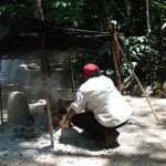 Anschließend ging es hinein in den Regenwald. Ronny erzählte uns einiges über die Verwendung verschiedener Pflanzen und wie sein Volk im Regenwald gelebt bzw. überlebt hatte. Bevor es dann noch tiefer in den Wald hineinging, rief er einige Worte in seiner Sprache, die den Geistern seiner Ahnen sagen sollten, dass wir seine Freunde sind und sie wissen, mit welchen Absichten wir hierher kommen. Er erklärte es danach mit den Worten: „Just let them know“.