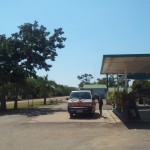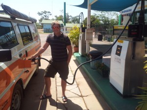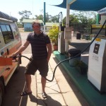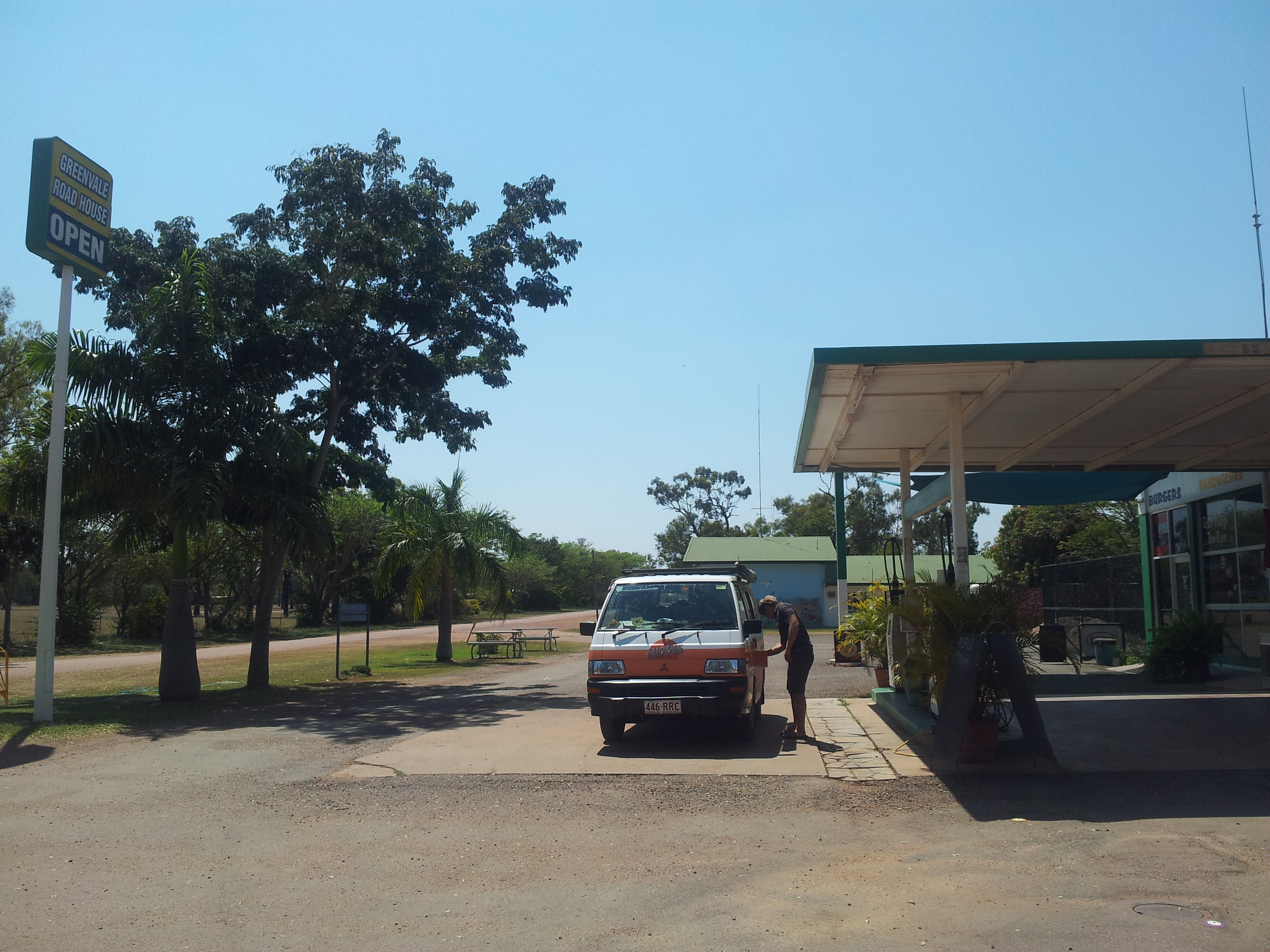 Es lag mal wieder eine lange Fahrt nach Townsville vor uns (ca. 500 km), die durch kaum bewohntes Gebiet führte. Wir hatten noch massig Benzin im Tank als wir losfuhren (es reichte noch für gute 250 km, wobei man sagen muss, dass man mit einer kompletten Tankfüllung ca. 400 km weit fahren kann), doch irgendwann wurde uns etwas mulmig, denn bewohnte Ortschaften lagen hier doch mal gut 100 km auseinander und wir hatten keinen Handyempfang, um irgendwie herauszufinden, wo die nächste Tankstelle ist. Und wir hatten noch keine einzige gesehen bisher, weder auf der Hinfahrt noch auf der bisherigen Rückfahrt… Irgendwann kam ein Schild, das wohl andeuten soll, dass die nächste Tankstelle 200 km entfernt sei. Es war ein blaues Schild mit einem weißen Tankstellensymbol und darunter die Angabe „200 km“ ebenfalls in weiß. Also zitterten und beteten wir ein bisschen, dass wohl doch noch eine Tanke vorher kommt, sonst würden wir wohl alt aussehen. Nach gut 350 km wurden wir erhört! Wie eine Oase tauchte irgendwann eine Tankstelle vor uns auf. Das Benzin war gute 10 Cent teurer als normal (pro Liter, wohlgemerkt), aber das war in dem Moment wirklich total egal.