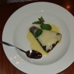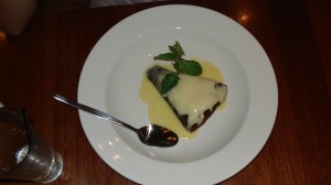 Zur Feier des Tages gab es auch ein Dessert (auch weil Bennys Barramundi nicht so viel hergab und wir nur gefrühstückt hatten 😉 – übrigens mal wieder typisch: das teuerste Gericht auf der Karte und das wenigste Material auf dem Teller :-/ ) – Schokoladenkuchen mit Vanillesoße. Ja, der war so gut wie er aussieht! 😀