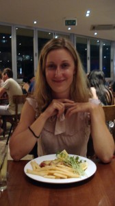 Wir hatten noch unser 5-jähriges zu feiern, also gingen wir – in Airlie Beach angekommen – richtig schick essen, in einem der (laut Auszeichnungen) besten Seafood-Restaurants von Queensland (zu Miris Glück hatten sie auch ein paar Gerichte ohne Fisch…). Der Franzose in Townsville hatte es Benny ans Herz gelegt, unbedingt mal einen Barramundi zu probieren. Also gab es kurzerhand Barramundi mit Macadamianuss-Pesto und Süßkartoffelchips. Miri aß ein Parmigiana-Hähnchen, das auch sehr lecker war.