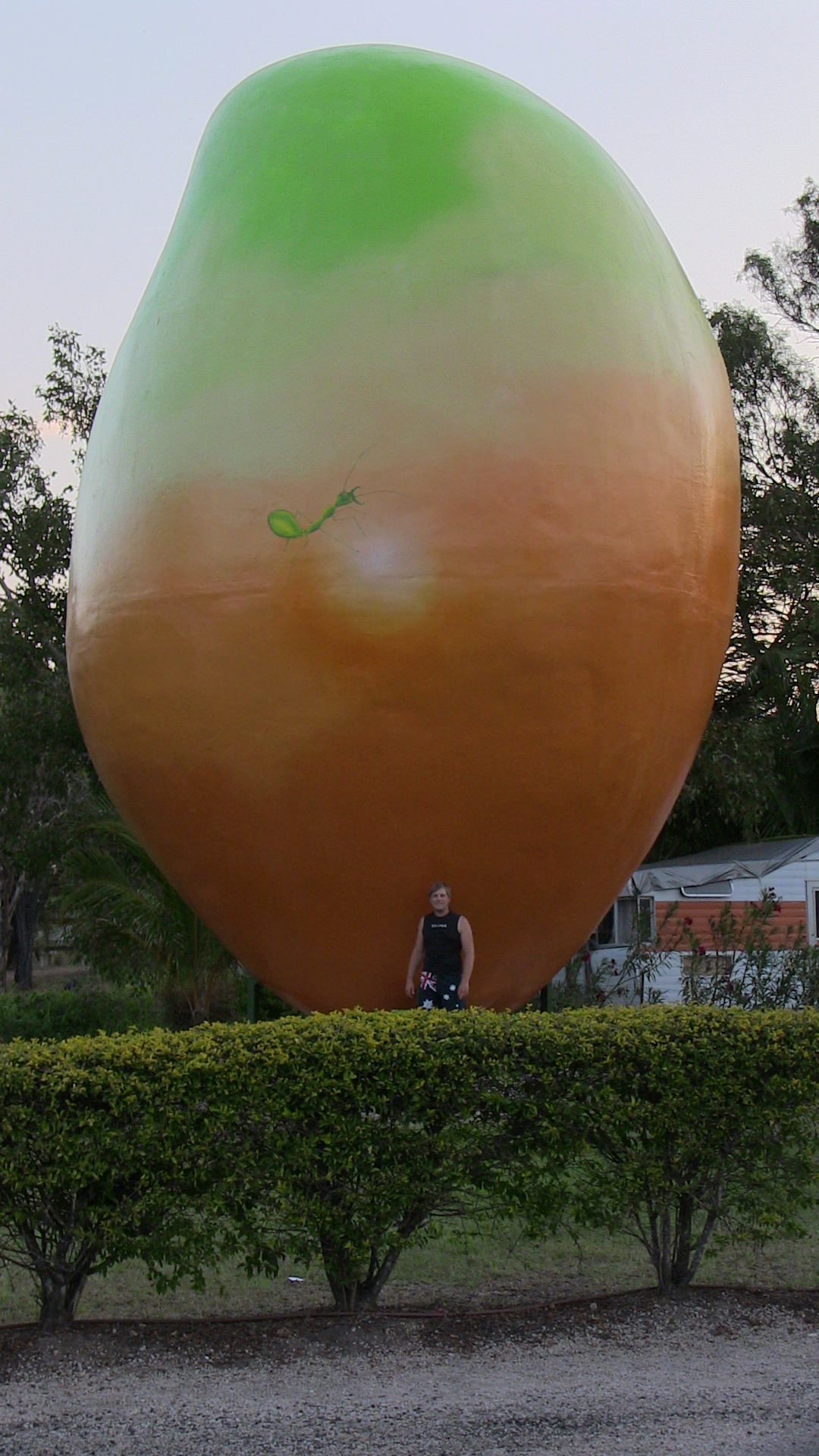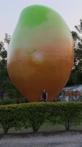 Alles in allem waren wir fast 2 h schnorcheln (vergingen wie im Flug und waren selbst erstaunt, dass es schon so spät war) und die haben sich komplett gelohnt. Wir wärmten uns anschließend noch etwas auf in der Sonne (irgendwann wurde es nämlich doch kalt) und fuhren anschließend noch die letzten Kilometer nach Airlie Beach. Diesmal sahen wir die Riesen-Mango bei Tageslicht (auf der Hinfahrt war es schon dunkel gewesen), also anhalten und noch schnell ein Foto schießen: