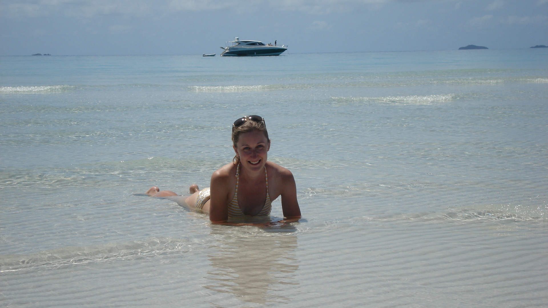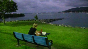 Wir schliefen heute auf einem Parkplatz eines Einkaufszentrums, da wir zu später Stunde nichts besseres mehr gefunden hatten (wie immer halt 😉 ). Hauptsächlich wollten wir nah am Hafen sein, damit wir am Morgen nicht mehr so weit zu fahren hatten, denn wir hatten ja eine Tour auf die Whitsunday Islands inklusive zwei Tauchgängen gebucht (Treff war um 7.30 am ). Mitten in der Nacht (es war noch dunkel) wurde Miri irgendwann von einem energischen Klopfen wach, begleitet von lauten „Hello“-Rufen. Benny schlief tief und fest und da er sich abends seine Ohrenstopfen angezogen hatte (es war nämlich aufgrund der Nähe einer größeren Straße nicht gerade ruhig), wurde er auch nicht wach. Miri versuchte einfach nur, keinen Mucks von sich zu geben und sich nicht zu rühren. Schließlich konnte der Typ (ein Ranger oder so, wir wissen es nicht) nichts machen, wenn wir nicht zu erkennen gaben, dass wir im Auto schliefen. Es war nicht gerade einfach ruhig zu bleiben, denn die ganze Prozedur dauerte mindestens 5 Minuten, in denen er auch mit seiner Taschenlampe durch die Spalten unserer Vorhänge leuchtete und sich alle Mühe gab, uns zu wecken. Irgendwann gab er zum Glück auf. Miri war nass geschwitzt und hoffte nur, dass er nicht mit Verstärkung wieder kommen würde, was zum Glück nicht der Fall war (falls wir es noch nicht deutlich erwähnt haben: es gibt hohe Strafen in Australien fürs Wildcampen. Der Franzose aus Townsville z.B., den wir abends getroffen haben, erzählte er hätte ein paar Tage zuvor in der Nähe des Dingo Beaches geschlafen und wurde dort von zwei netten Polizisten in der Früh geweckt und durfte gleich mal 200 Dollar löhnen. Man kann sich wohl schöneres vorstellen als so geweckt zu werden).