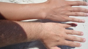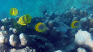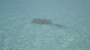 Als wir irgendwann genug Fotos geschossen hatten (so an die 100 😉 ), konnten wir dann runter an den Strand und hatten dort etwas Zeit zur freien Verfügung. Also nichts wie rein in das kristallklare Wasser! Uns war schon angekündigt worden, dass wir einige Fische, Rochen und evtl. auch kleinere Haie sehen würden und wir hatten Glück und sahen mehrere Rochen und einige Fische! Man sollte aber gleichzeitig auch vorsichtig sein, denn klein waren die Rochen jetzt auch nicht wirklich.