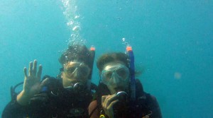 Der zweite Tauchgang verlief dann ohne weitere Komplikationen, leider auch ohne spannende Fische. 😉 Dafür machte unser Tauchguide noch eine Aufnahme von uns beiden, wo wir dieses Foto extrahiert haben: