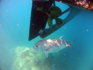 Nach dem zweiten Tauchgang verweilten wir noch ein wenig vor der Insel, bis auch die letzten Schnorchler an Board waren. Da blieb für Benny noch ein wenig Zeit nochmal ins Wasser zu hüpfen und den großen Fisch, der immer noch kreisend unter dem Boot umherschwamm, etwas intensiver zu fotografieren bzw. zu filmen.