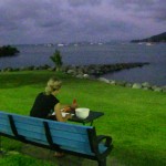 Am Abend verspeisten wir dann noch (natürlich mit Meerblick) die Tomaten und Gurken in Salatform, die wir am Vortag geschenkt bekommen hatten.