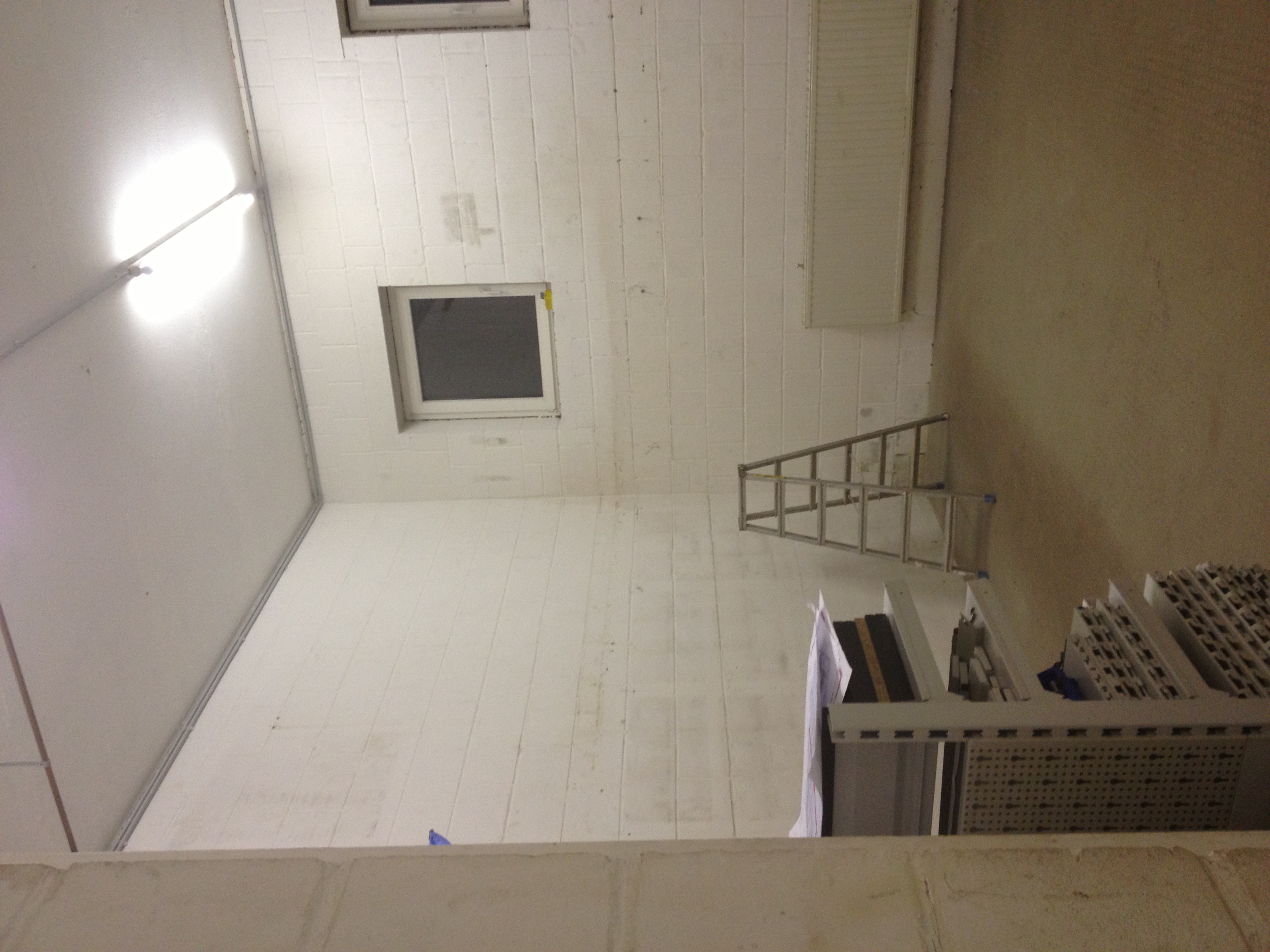Da es sich relativ kurzfristig ergeben hatte, dass wir unsere Wohnung jetzt schon um ein weiteres Zimmer erweitern werden (somit haben wir auch ein richtig großes Arbeitszimmer), musste das Lager an der Stelle, wo das Zimmer hinkommt, geräumt werden. Dort wird nämlich der Boden auf das gleiche Höhenniveau um ca. 1,20m angehoben und ein Durchbruch gemacht.