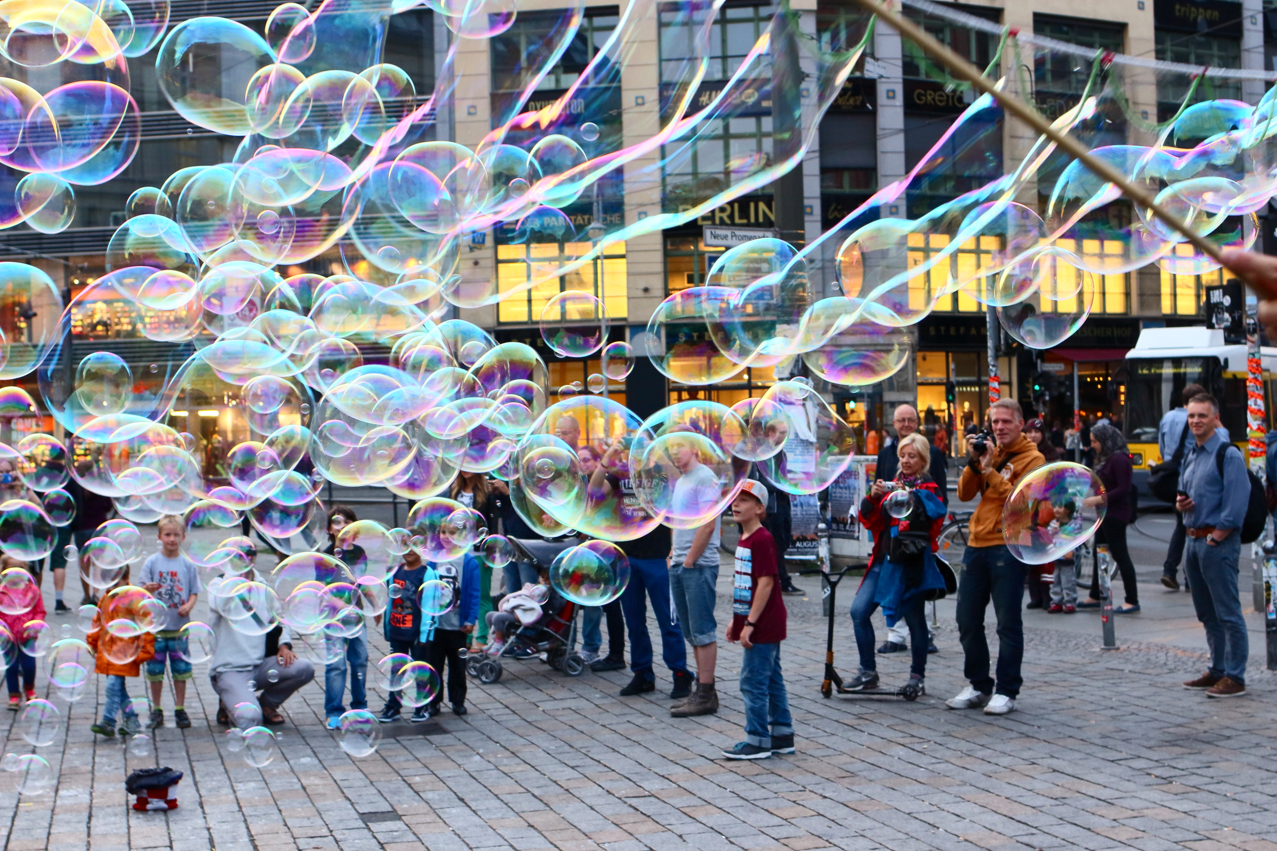 Digeridoo-Klängen lauschend, die aus einem Gerät kommen, das aus Abflussrohren gebaut wurde, und zerblatzende Seifenblasen anschauend, machen wir uns langsam auf den Rückweg, um für den nächsten Tag fit zu sein.