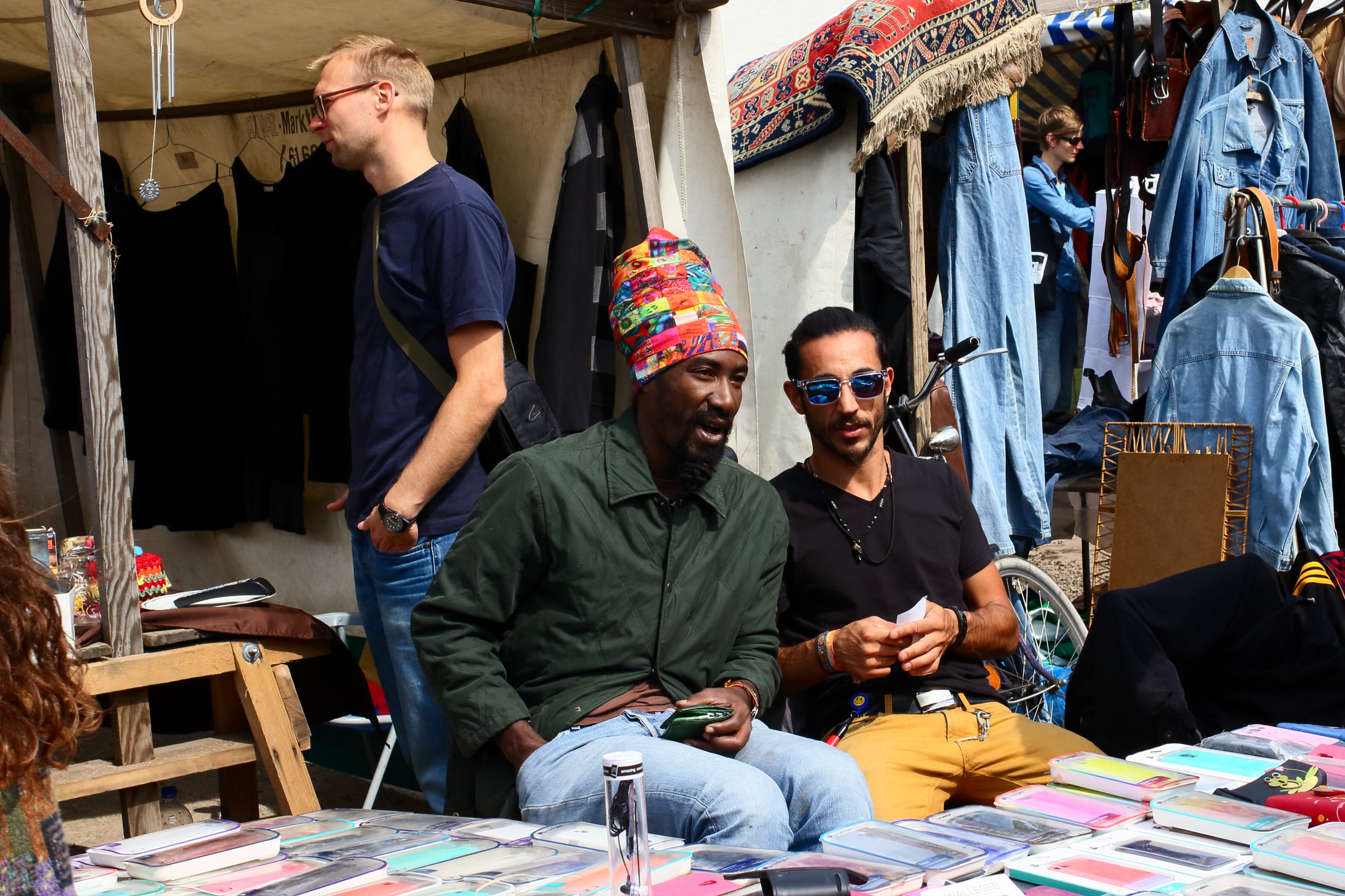 Heute trafen wir uns (nach erneutem Helga-Frühstück) mit Nasti am Mauerpark, wo jeden Sonntag ein Flohmarkt stattfindet, der bei einem Berlinbesuch als Muss angesehen wird, aber auch von Einheimischen besucht wird. Es gab einiges zu gucken und zu kaufen, mit zweiterem hielten wir uns aber zurück.