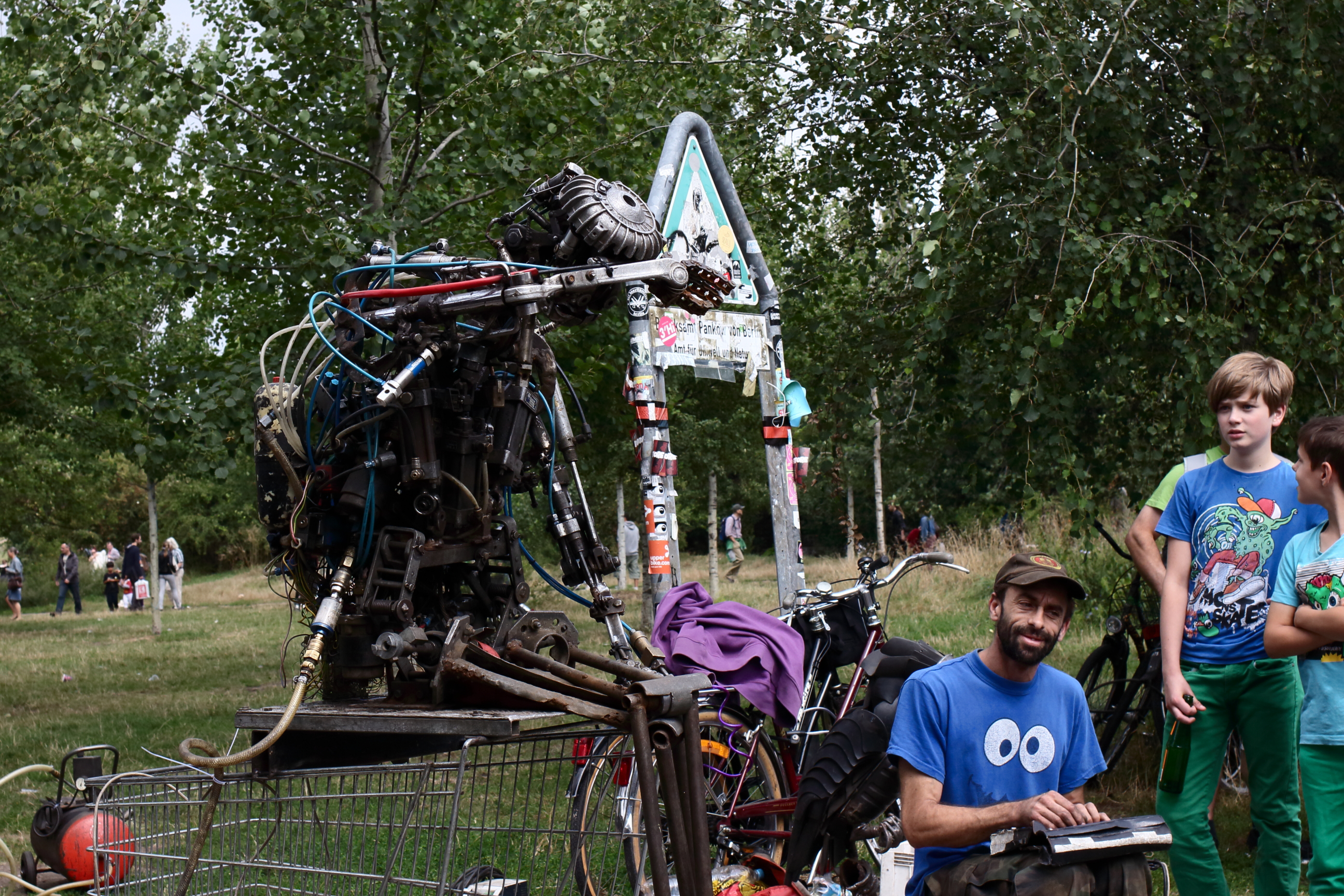 Am Rand des Flohmarkts findet man auch alle möglichen Arten von Gaucklern, wo wir auch diesen Typen entdeckten: (Foto). Er hatte einen Roboter gebaut, der mit viel Geklapper und Gezische ein kleines Stück aufführte, das damit endete, dass ein Kind dem Roboter was zu trinken reichen sollte, dass dieser dann in die Menge versprühte. Witzig war auch, als sich wohl kurz ein Kontakt gelöst hatte, packte der Kerl seinen Lötkolben aus und reparierte kurzerhand den Fehler.